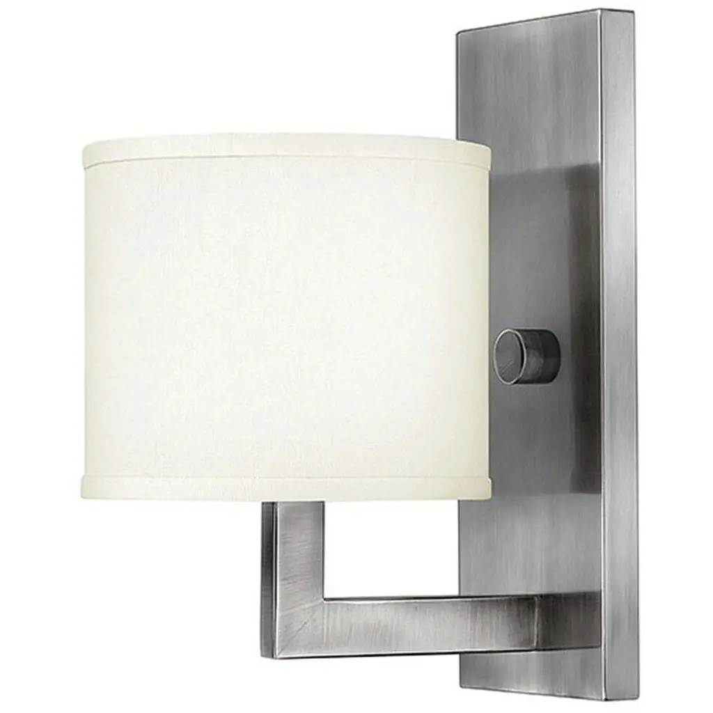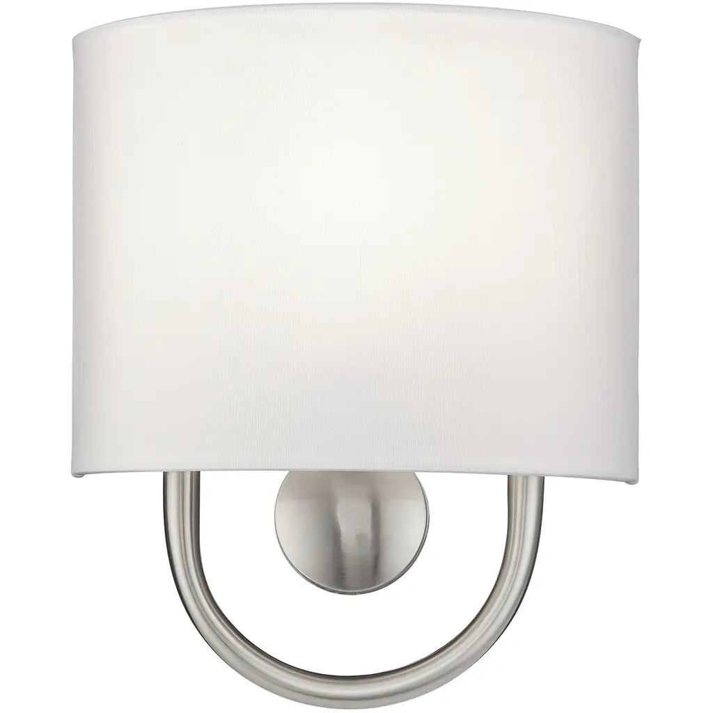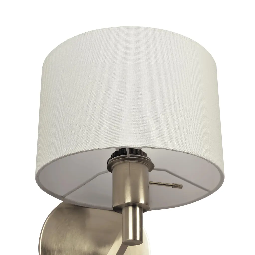 Brushed Nickel Base Wall Lamp With Rotary Switch White Fabric Shade - Brushed Nickel,silver,white