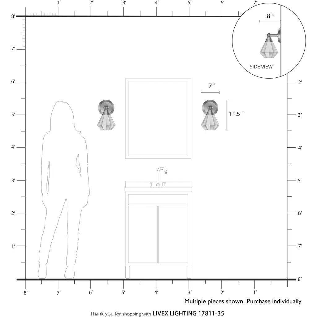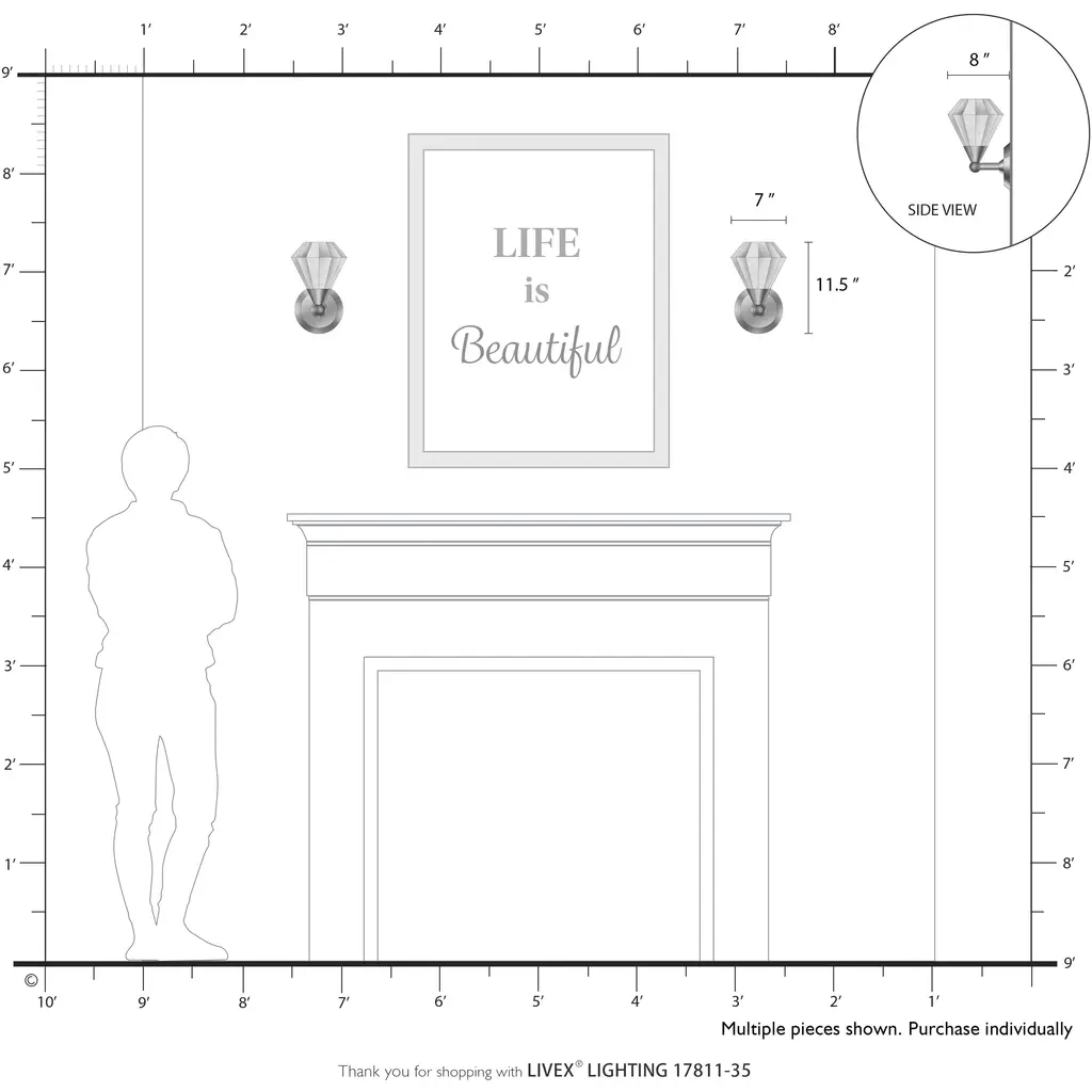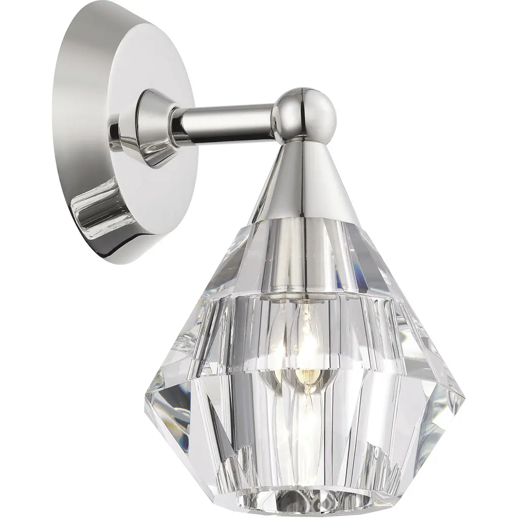 1 Light Polished Nickel Crystal Single Sconce
