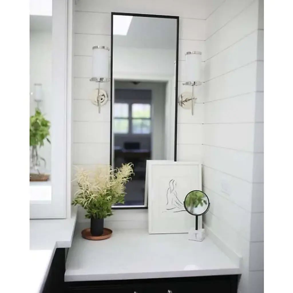 The Bryant Wall Sconce by Visual Comfort Signature, formerly known as Visual Comfort, features a cylindrical, White glass shade with detailed trim. This shade smoothly and evenly distributes light to its surroundings while complementing its expertly finished frame and supports. A 4-inch wall plate with concentric circles completes the look. Dimmable with a standard incandescent dimmer (not included). Designed by Thomas O'Brien.