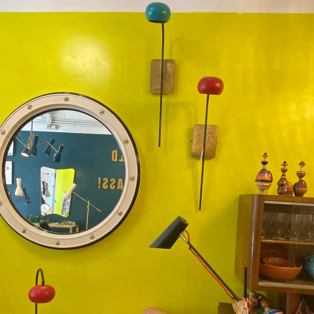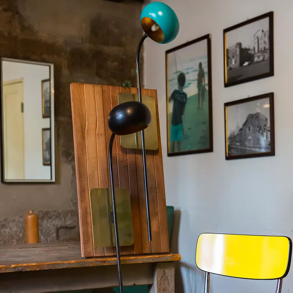 This stunning sconce from the B'Tulip Collection will not go unnoticed in a modern or contemporary interior, either as accent piece, in multiples in a hallway, or in a pair flanking a bed or a mirror. Eclectic and sophisticated, this piece is inspired by the delicate allure of nature and crafted entirely of brass, with a natural finish on the wall support, and a wax based black finish on the slightly curved stem supporting the flower-like shade. The shade is turquoise outside and coated with luxe gold leaf inside, for a magnificent look. The LED bulb is a G9 max 18W.