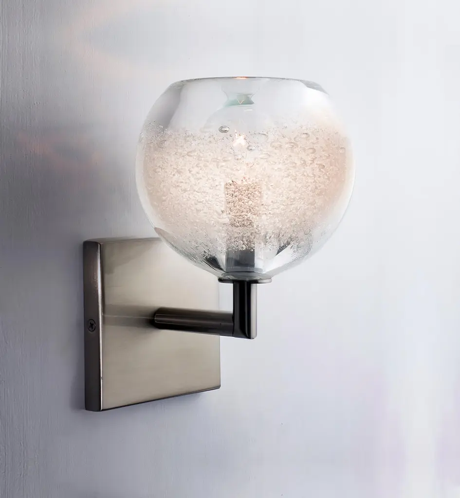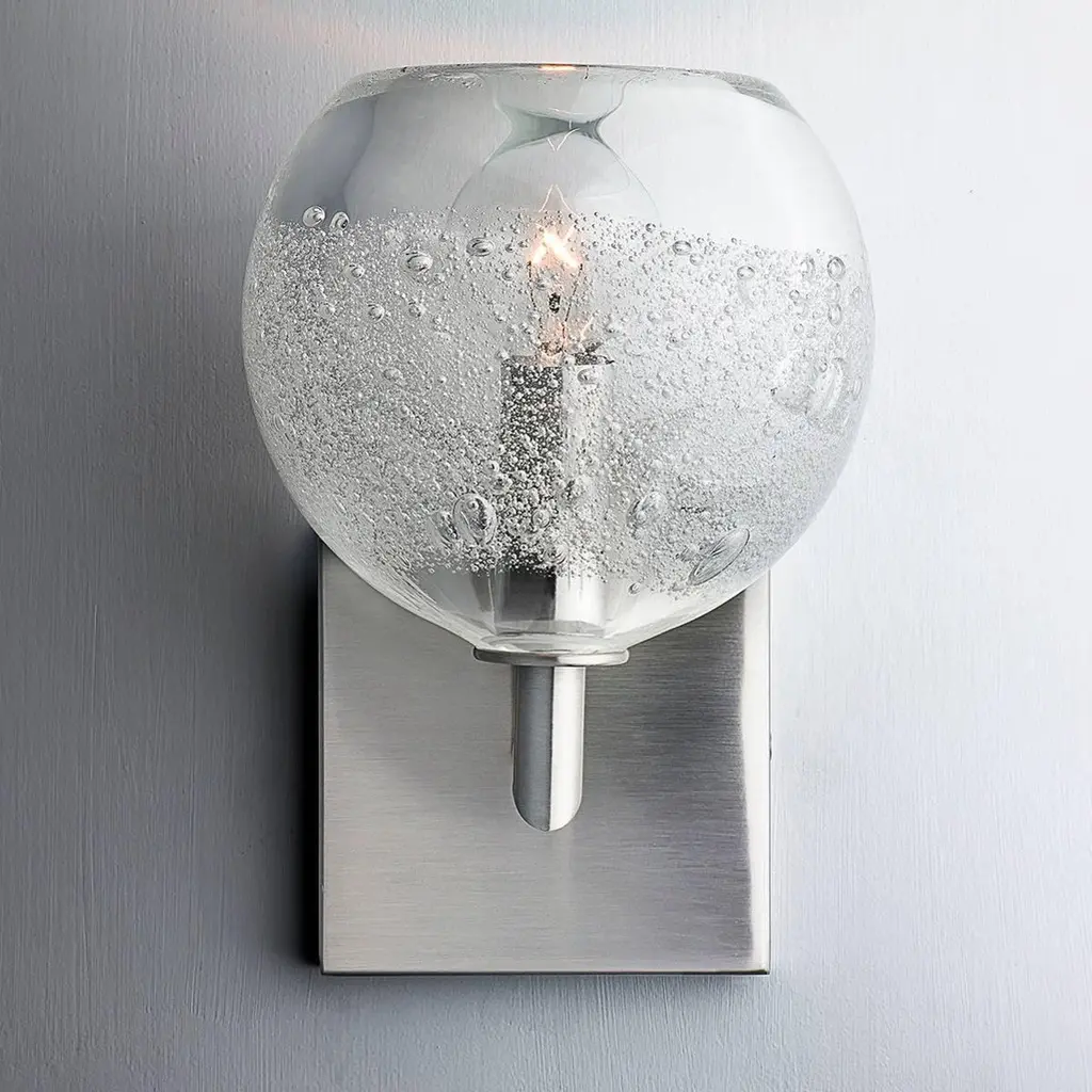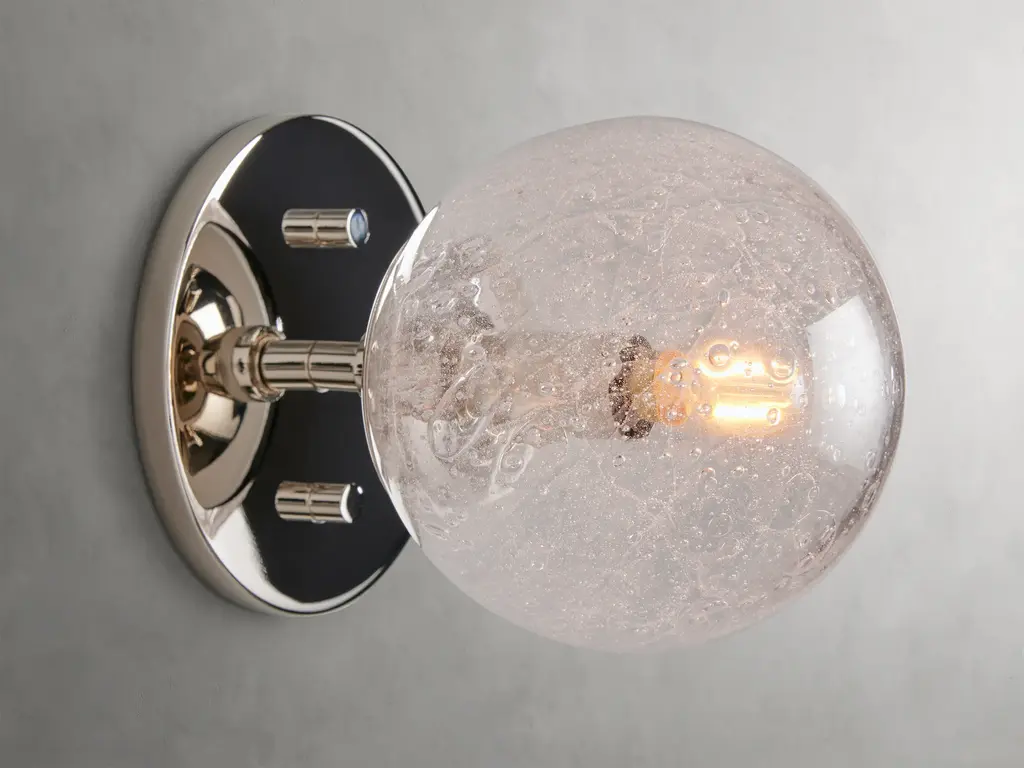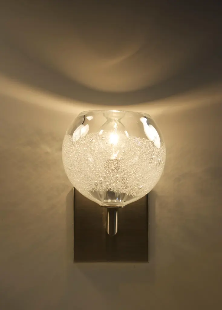 Bubble Round Elbow Sconce, Hand Blown Clear Glass With Bubbles - Made To Order