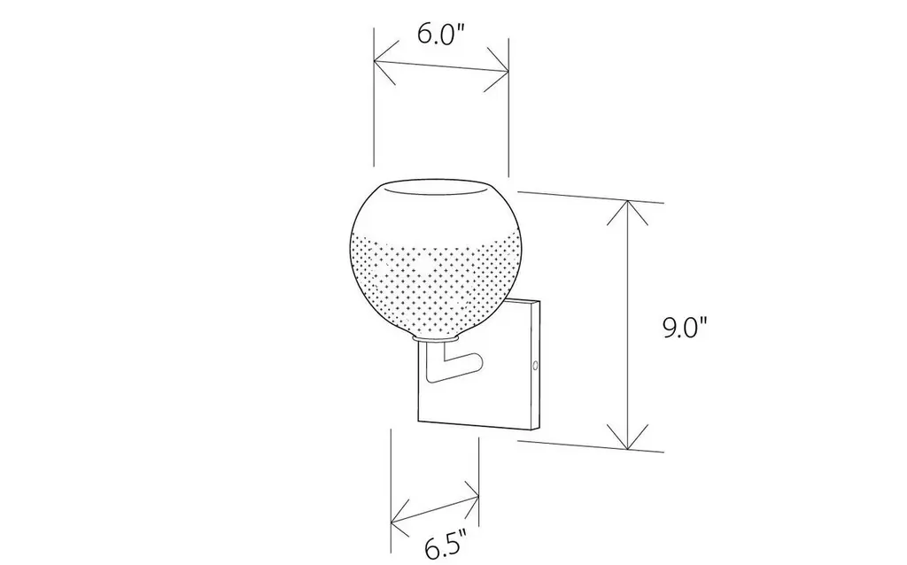 This series of wall sconces is classically inspired. Scaled versions of our pendants extend from elegant metal armatures. The proximity of the glass to the wall allows for each piece’s unique light pattern to be magnified. Hand blown and shaped in lead free crystal. No molds are used, and each glass shape is unique. Designed and made by Siemon & Salazar in California. Signed and dated.SPECSDimensions: 6.0” x 9.0” x 6.5”Materials: glass, metalProduct weight: 5.5 lbsLight source: candelabra base E12 socketLamping: E12 base, G16.5 lamp, 40 W max250 V AC MaxRound Canopy: 4.5” Ø x 0.63”Square Canopy: 4.5” x 4.5” x 0.80”Canopy finish matches Metal FinishC-UL-USGLASS FINISHClear (GL-129)LAMPINGE12 LED bulb included - 2700 K, 90CRI, 4 W, 350 lumens, 120 V AC