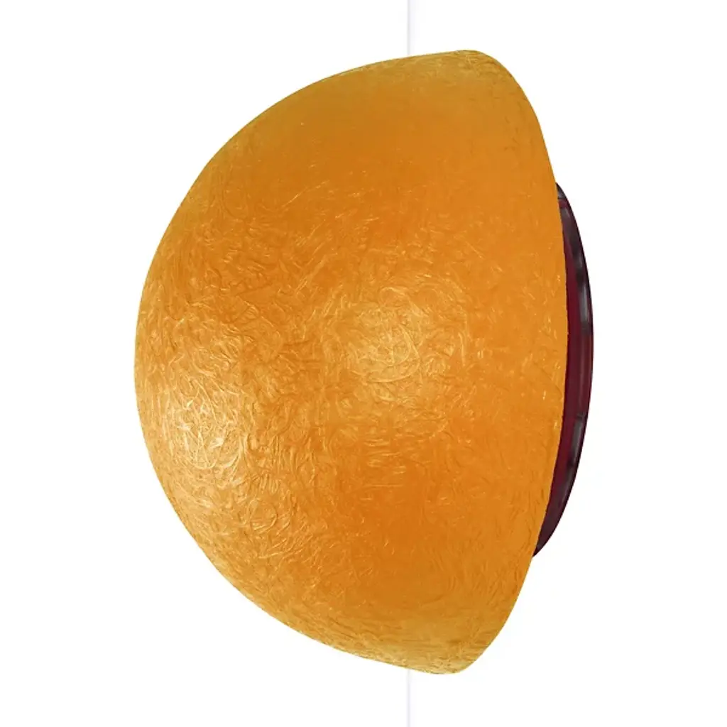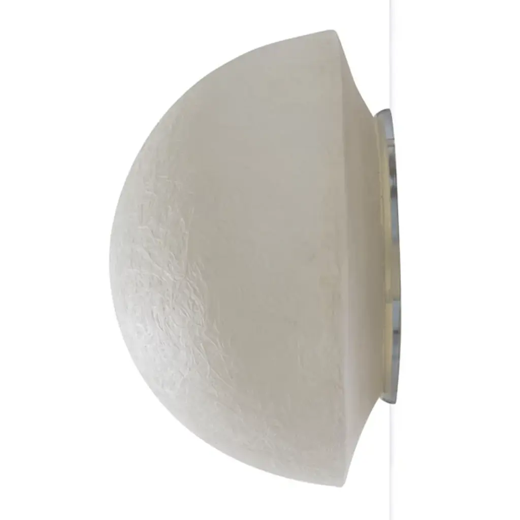 Embrace the warm and colorful light of the Button Ceiling/Wall Sconce from In-Es Art Design. An original design part of the Luna collection, its circular organic profile is inspired by the mysterious quality of the moon. It is constructed from Nebulite, a unique material made of resins and fibers that display a delicate swirling effect and textural aesthetic reminiscent of the moon’s surface. When illuminated, this alluring fixture brings an atmospheric touch of color and light to its surroundings.