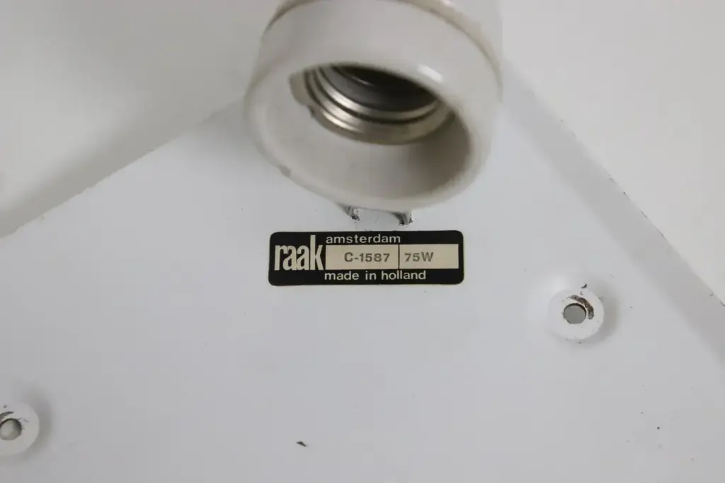Designer: unknown manufacturer: raak amsterdam origin: the netherlands quantity: 14 materials: metal, glass period: 1960 measurements: l:17 w:17 h:17 condition: very good, wear consistent with age and use i have official proof of authenticity such as vintage catalogs, designer records, or other literature sources and take full responsibility for any authenticity issues arising from misattribution, european plug (up to 250v).the wiring of this item may be original and might need replacement, if not specified otherwise.