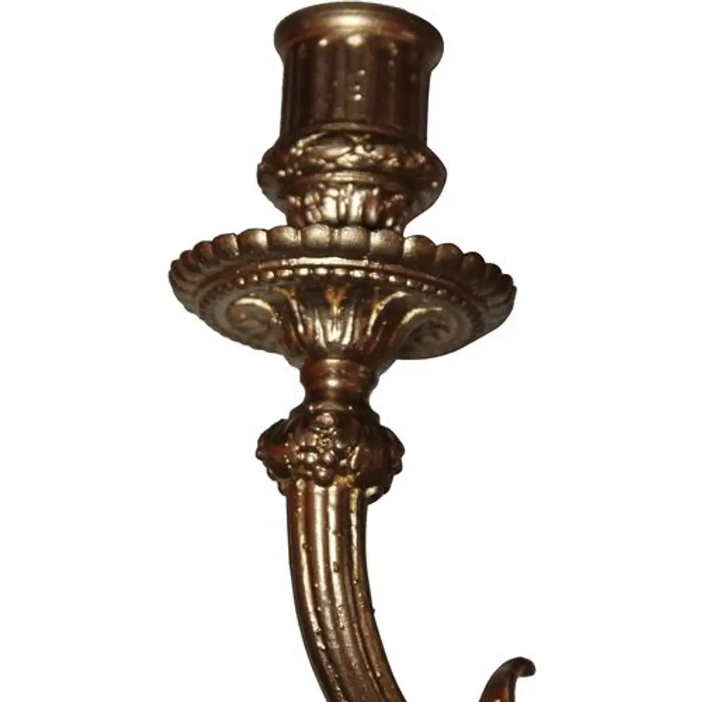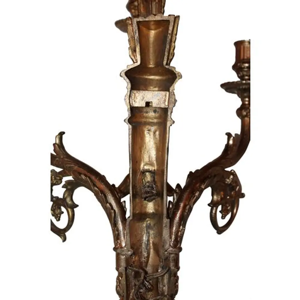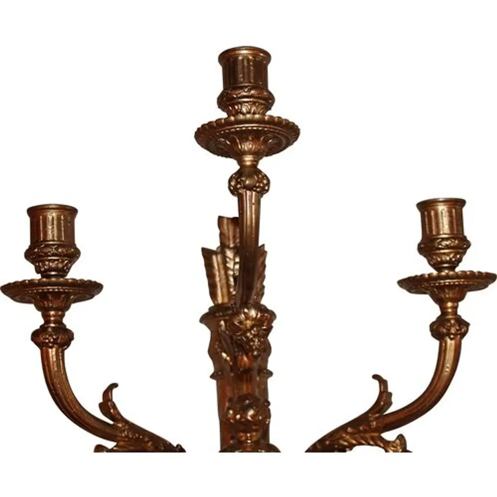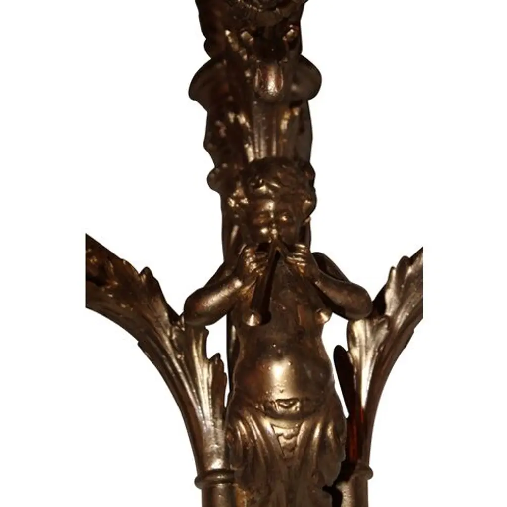 Pair of early-19th-century gilt-metal sconces with a cherub motif. Not electrified, but have been in the past and retain remnants of cloth wire.