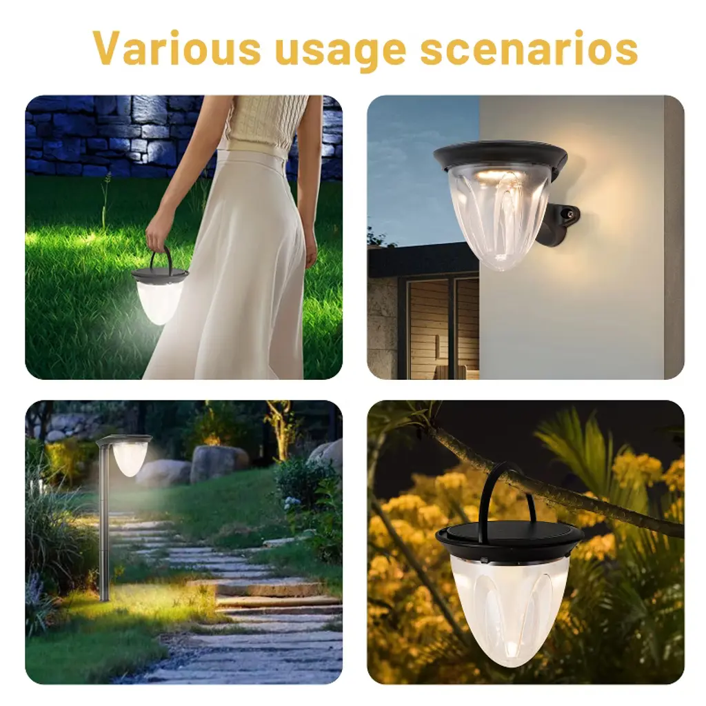 lluminate your outdoor spaces with this versatile solar path light, combining versatility, efficiency, and durability. Powered by a high-efficiency solar panel with a dusk-to-dawn sensor, it provides hassle-free lighting without wiring. Versatile Usage in one design that you can use it as a portable lantern, wall light, pathway light, or hanging light with its detachable design and included accessories. The integrated 5W LED offers adjustable brightness (250lm/500lm) and dual color temperatures (3000K/6000K) to suit any ambiance. Built with a durable, anti-rust, weather-resistant frame and IP65 waterproofing, it’s perfect for pathways, gardens, patios, and more.
