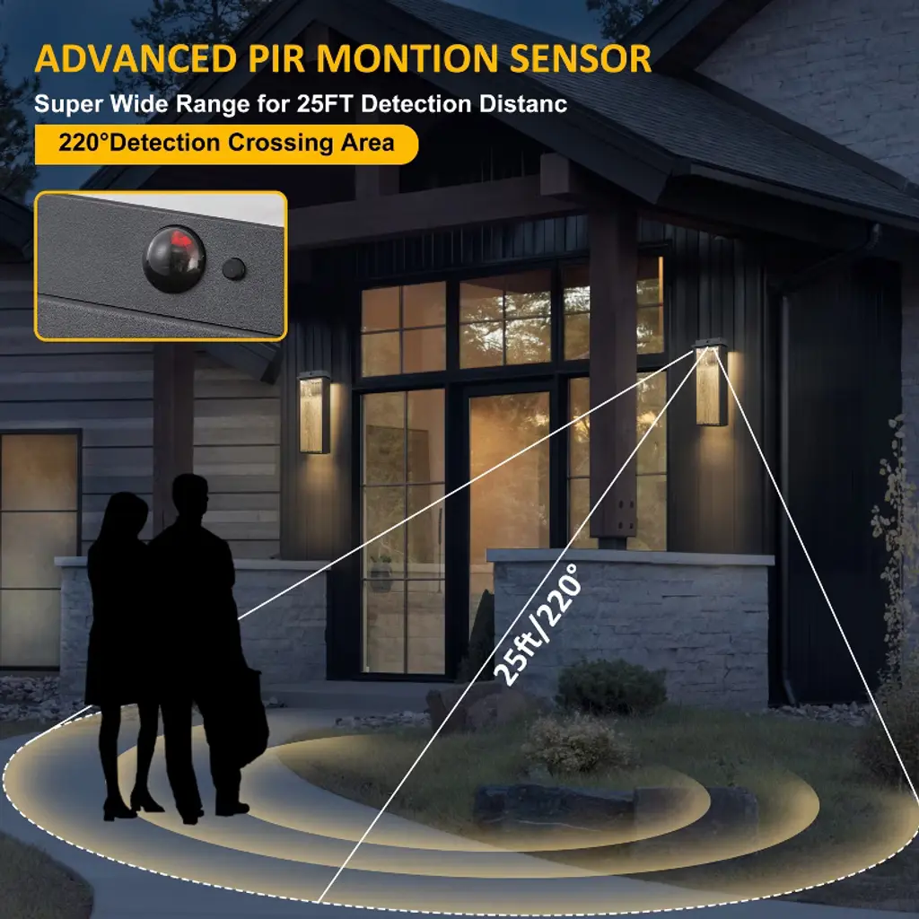 C Cattleya 20in. Matte Black Motion Sensor And Dusk To Dawn Led Outdoor Wall Lanterns With Ripple Tempered Glass(1-pack)
