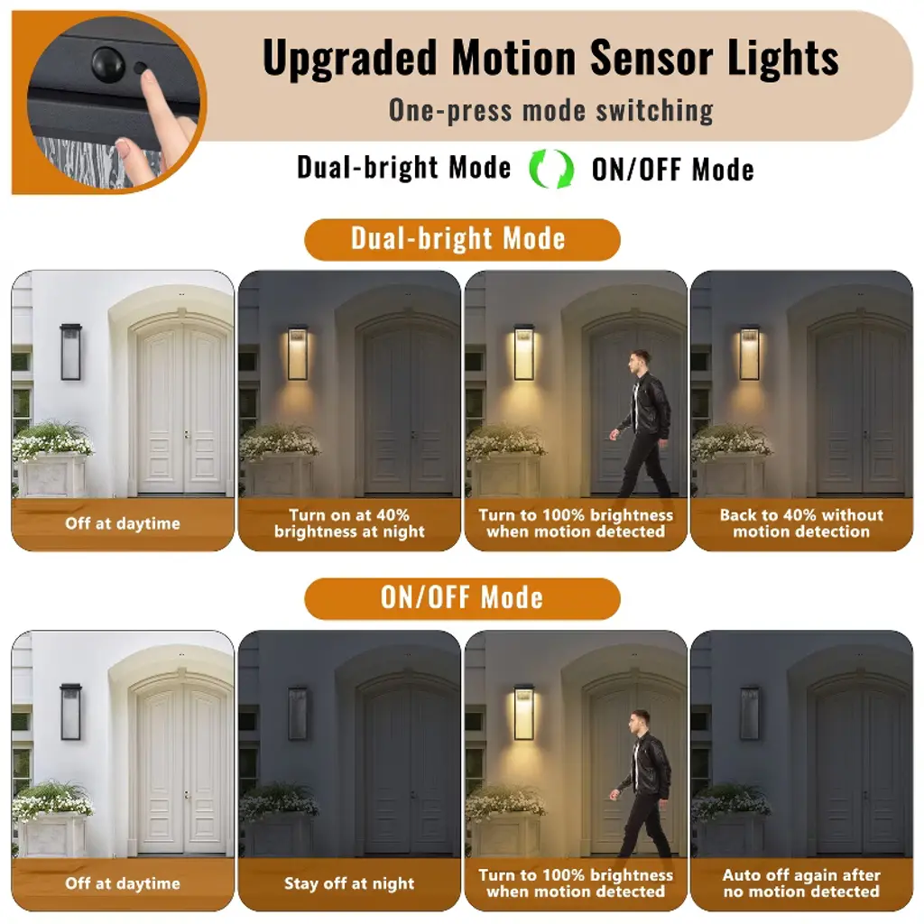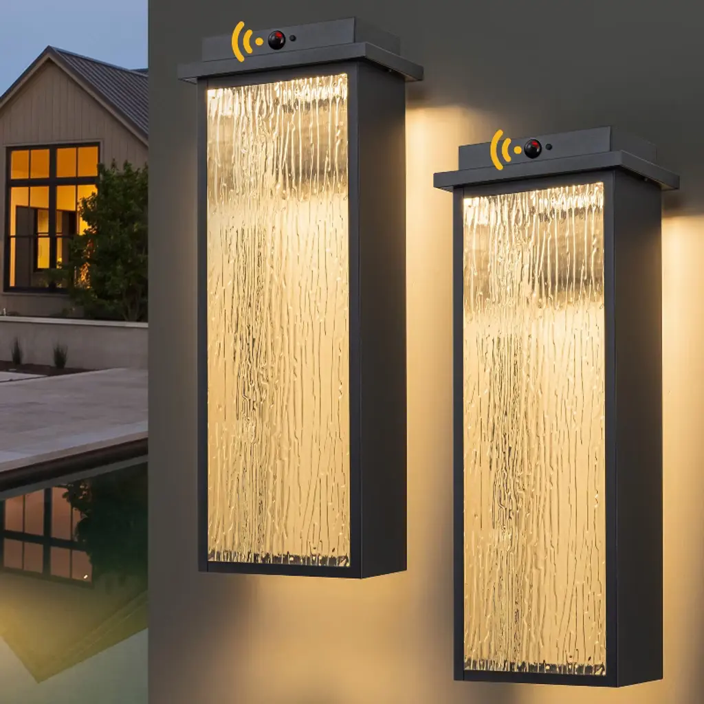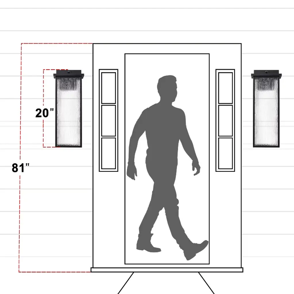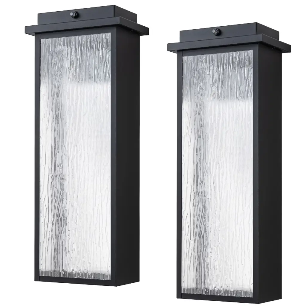 C Cattleya 20in. Matte Black Motion Sensor And Dusk To Dawn Led Outdoor Wall Lanterns With Ripple Tempered Glass(2-pack)