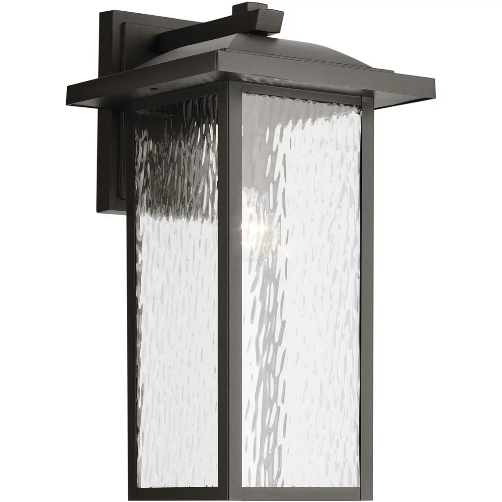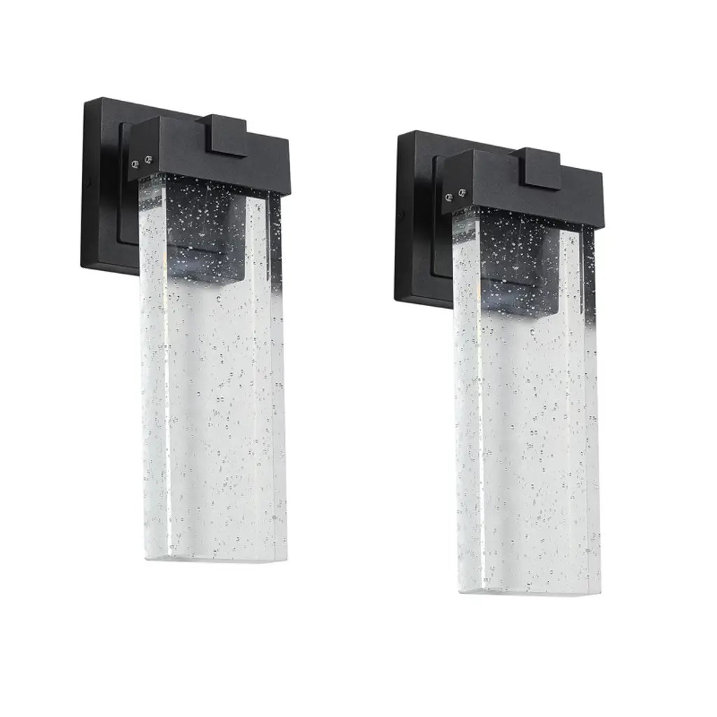 Give your outdoor space a modern charm with the LED Wall Sconce. It highlights a thick tempered glass panel with a waterfall texture that is securely placed at the front and back of this rich black frame. Capturing the light within each crevasse, the integrated LED creates a 3D effect as the light grazes against the surface. With a photocell sensor, the light fixture will auto-on at dusk and auto-off at dawn, bringing safety and convenience to outdoor spaces.