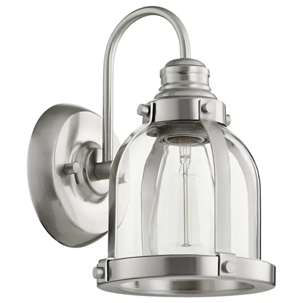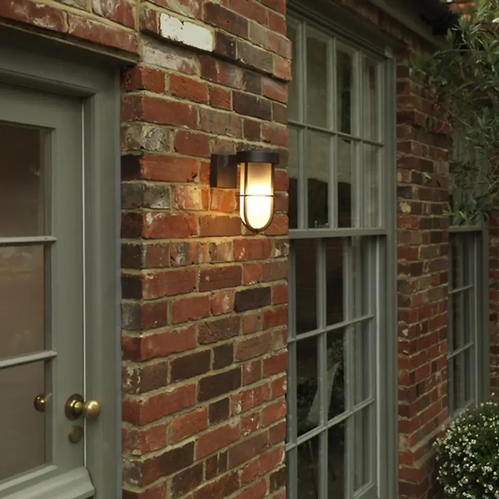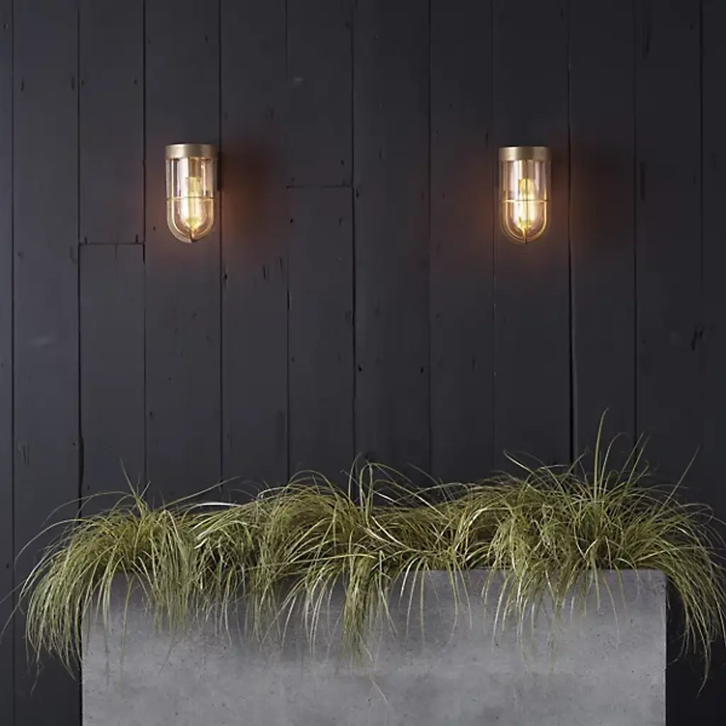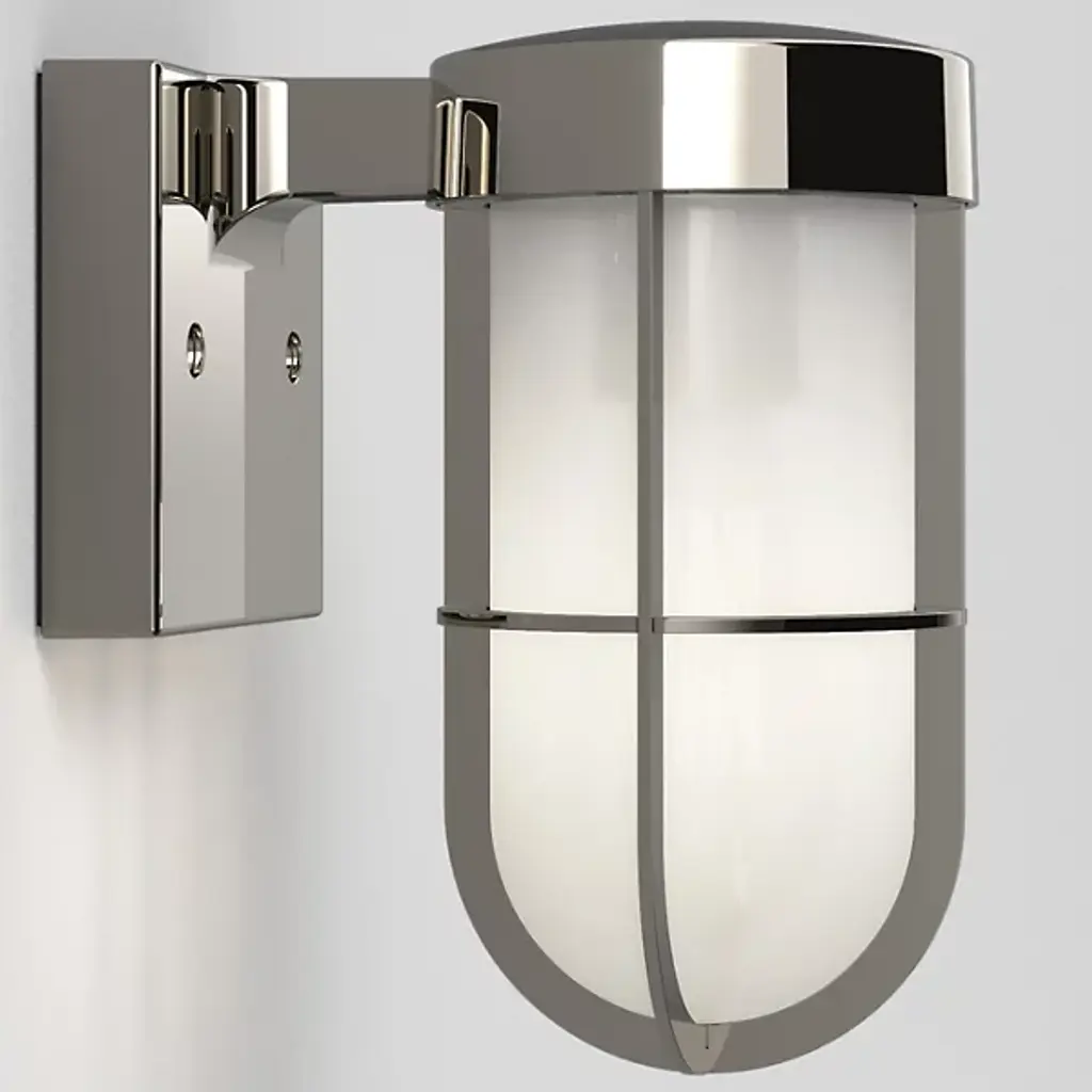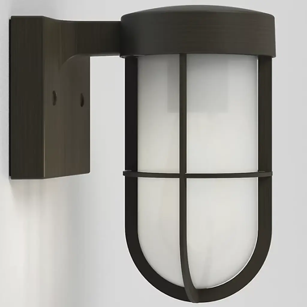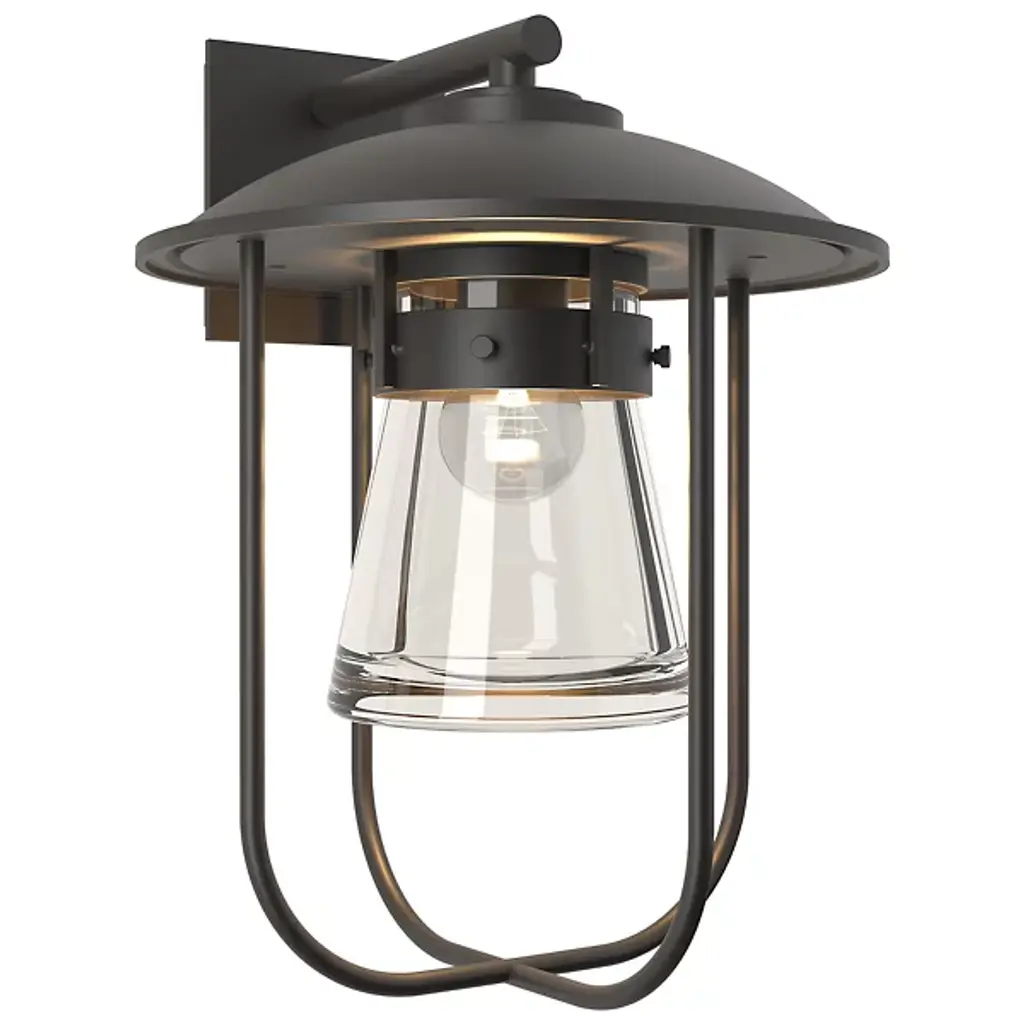 Offer a warm and welcoming beacon of light with the Cabin Outdoor Wall Sconce by Astro Lighting. This fixture is supported by a square backplate and a robust arm that holds a cylindrical shade. Clear glass enfolds an exposed incandescent bulb and socket while a series of slim metal bars surround the glass, curving over its rounded end to lend a geometric element and subtle coastal flair. Weather-resistant and complementary to a variety of exteriors, this piece brings modern style and functional light in any outdoor space.