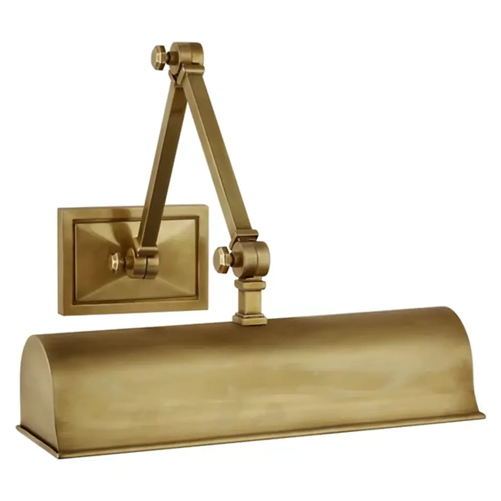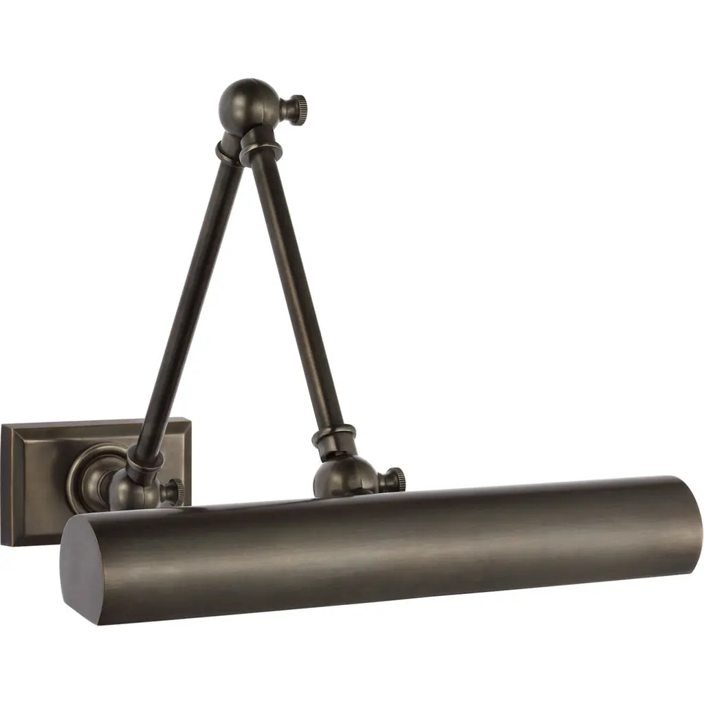 The Cabinet Maker Library Wall Sconce by Visual Comfort Signature, formerly known as Visual Comfort, has a tailored, contemporary feel that brings form and function to spaces. With a jointed arm that makes the ability to articulate a smooth, long shade just where it is needed, this wall light is ideal for highlighting art, books, and more. Anchored by a square wall plate and accented with thoughtful touches at the joints in the arm, this design has a handsome look that is at home in a range of locations.