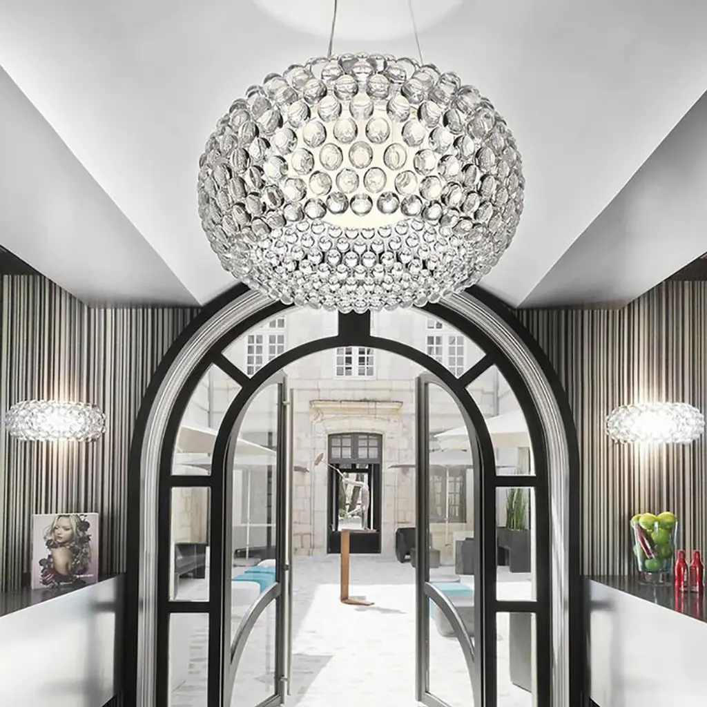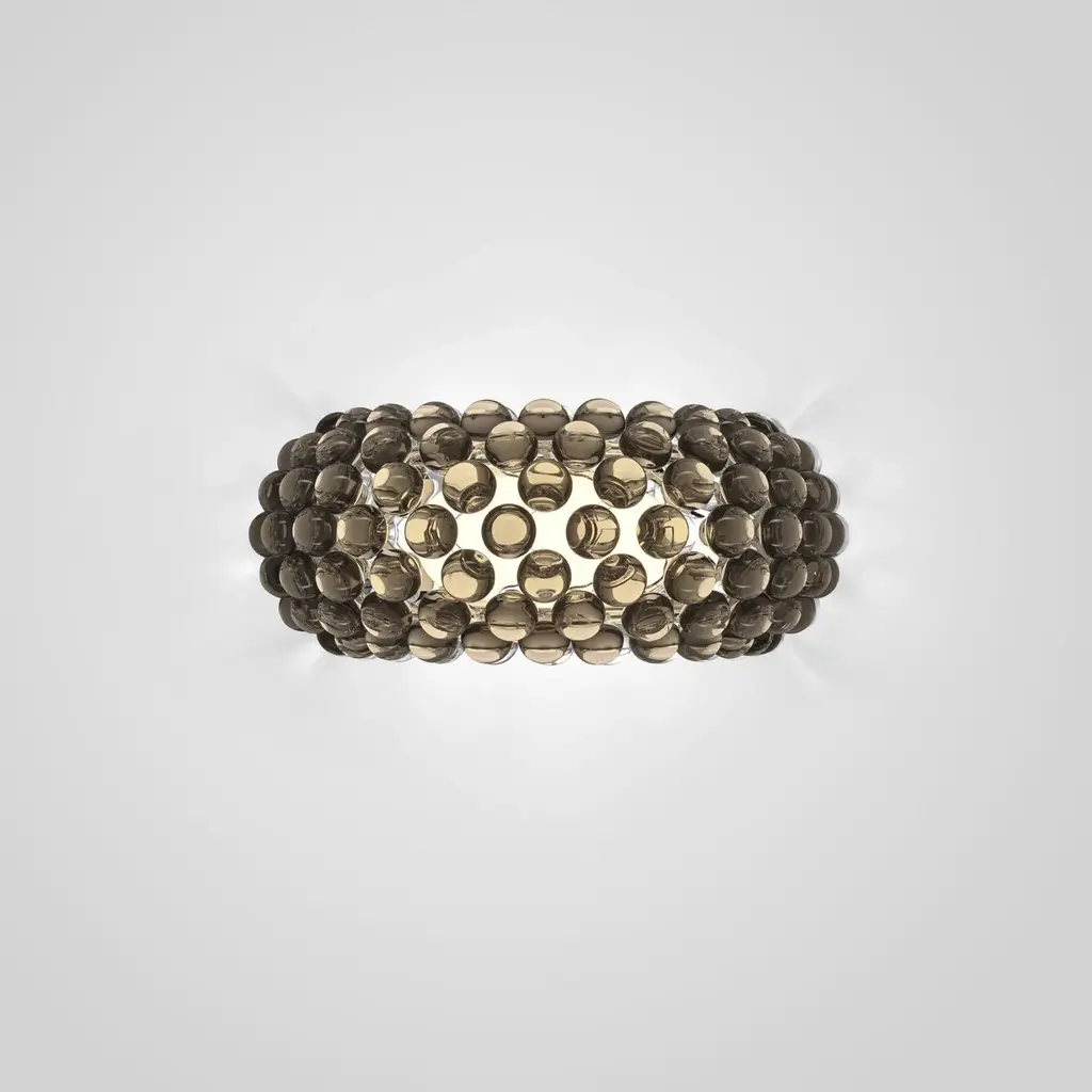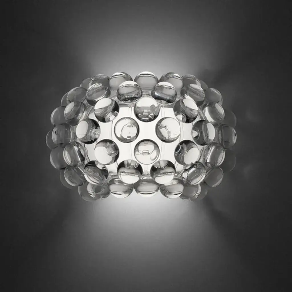 Rich, bright and sophisticated, the Caboche lamp is a mosaic of refraction, a perfect fusion of different personalities in one form, coming together to create the body and light effect of the lamp. When it is turned on, the light diffuses from inside the spheres like lots of bright crystals, lighting the surrounding environment. Caboche wall lamp is a jewel of creativity and technology, available in two sizes and Clear version. The lamp is the perfect protagonist for homes or public areas, uniting visual impact with lightness, decorative value and functionality. Features