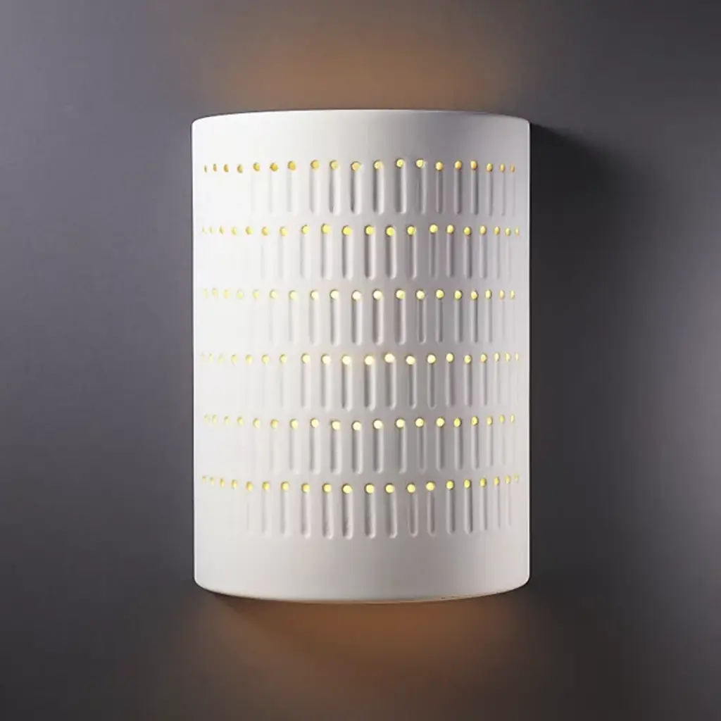 Provide unique illumination without drawing attention to the light fixture itself. A ceramic fixture featuring a paintable Bisque finish, the Justice Design Group Cactus Cylinder Outdoor Wall Sconce is an excellent option when desiring unobtrusive lighting for the parameter of a home. Available in two sizes.