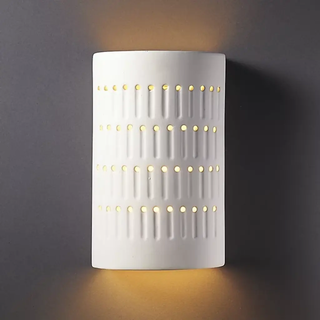 Provide unique illumination without drawing attention to the light fixture itself. A ceramic fixture featuring a paintable Bisque finish, the Justice Design Group Cactus Cylinder Outdoor Wall Sconce is an excellent option when desiring unobtrusive lighting for the parameter of a home. Available in two sizes.