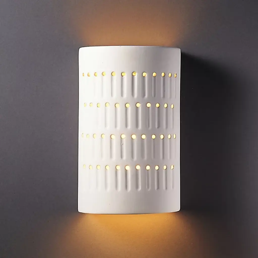 A graphic touch of the southwest suitable wherever you live. The Cactus Cylinder Wall Sconce by Justice Design Group is made of ceramic, with a half-cylinder shade accented by a pattern of divots and perforations. The rows of small holes allow ambient light to peek out the sides as well as above and below through the shade’s open ends. The high quality of light and artful look of this wall sconce will enhance any modern hallway, bathroom or other interior.