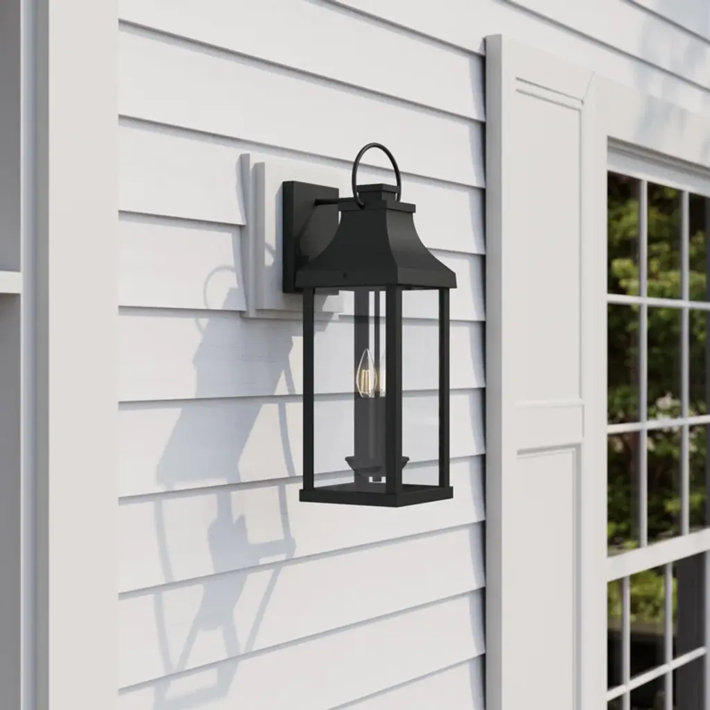 Transitional meets are modern with the Caden medium wall lantern. The bold lines and an oversized ring in a classic finish add classic curb appeal to your home. Part of our Caden collection and backed by our warranty.