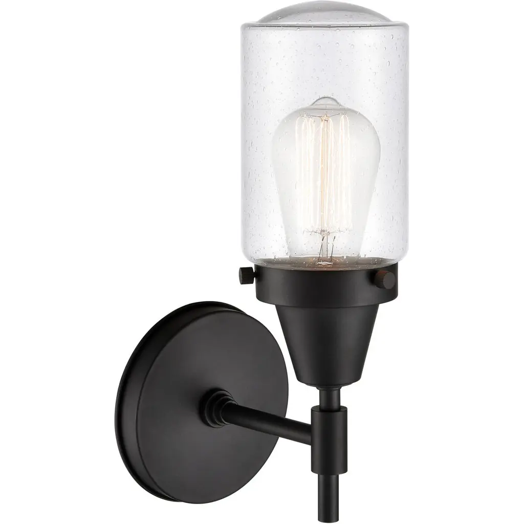Caden Led 5 Inch Matte Black Sconce Wall Light In Seedy Glass