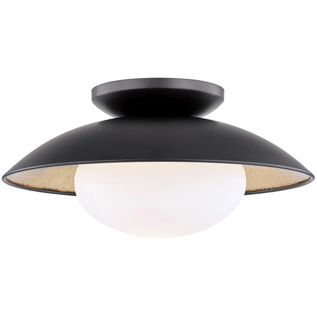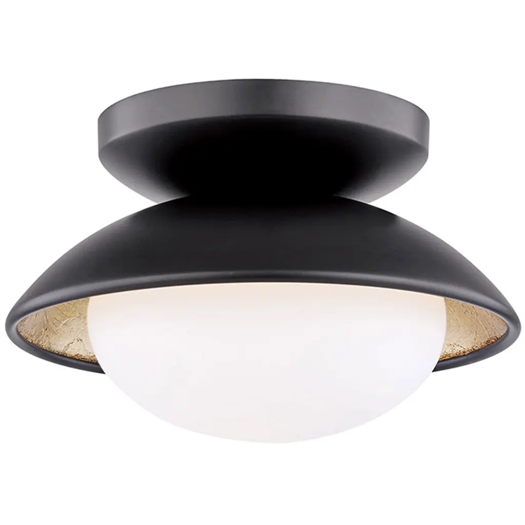 A subtle, yet striking design perfect for use on ceilings and walls, the Cadence Semi Flush Mount from Hudson Valley Lighting brings chic sophistication to any interior. With real gold leaf giving this piece extra luster and texture, it contrasts well with the matte black and white finishes, while beautifully reflecting the light. Adaptable to your needs, this flush mount is perfect along a hallway ceiling or as more of a sconce in a bedroom or walk-in closet.Highlights