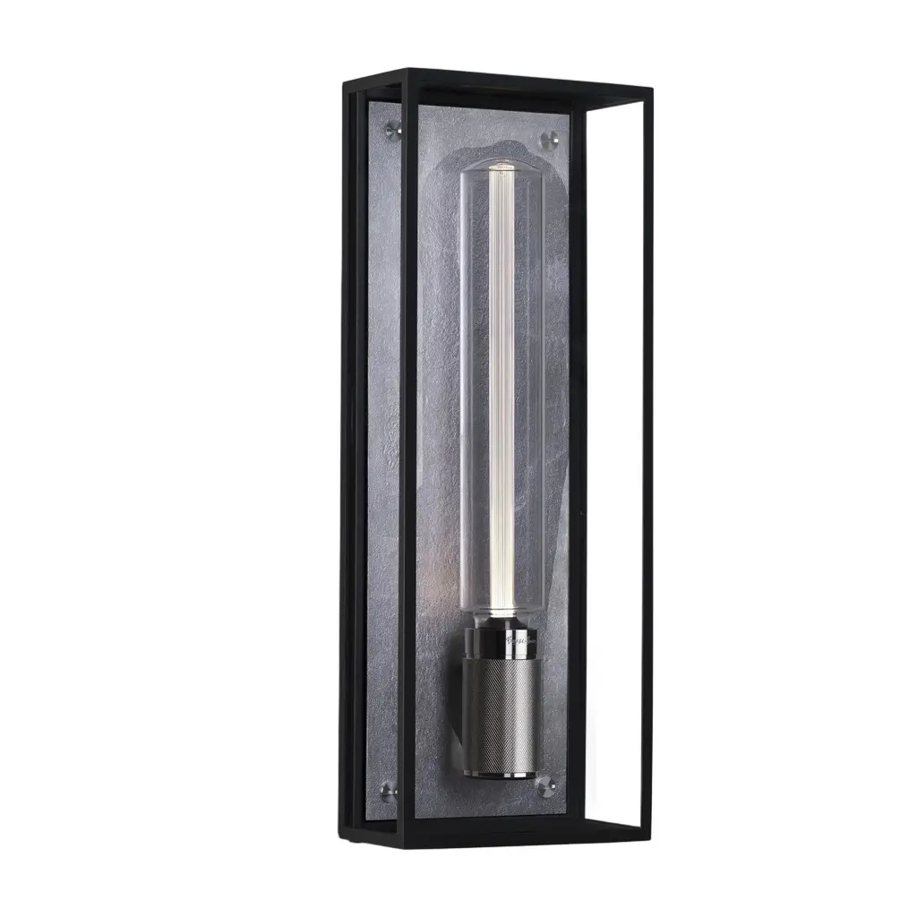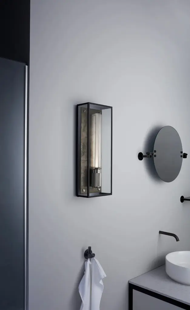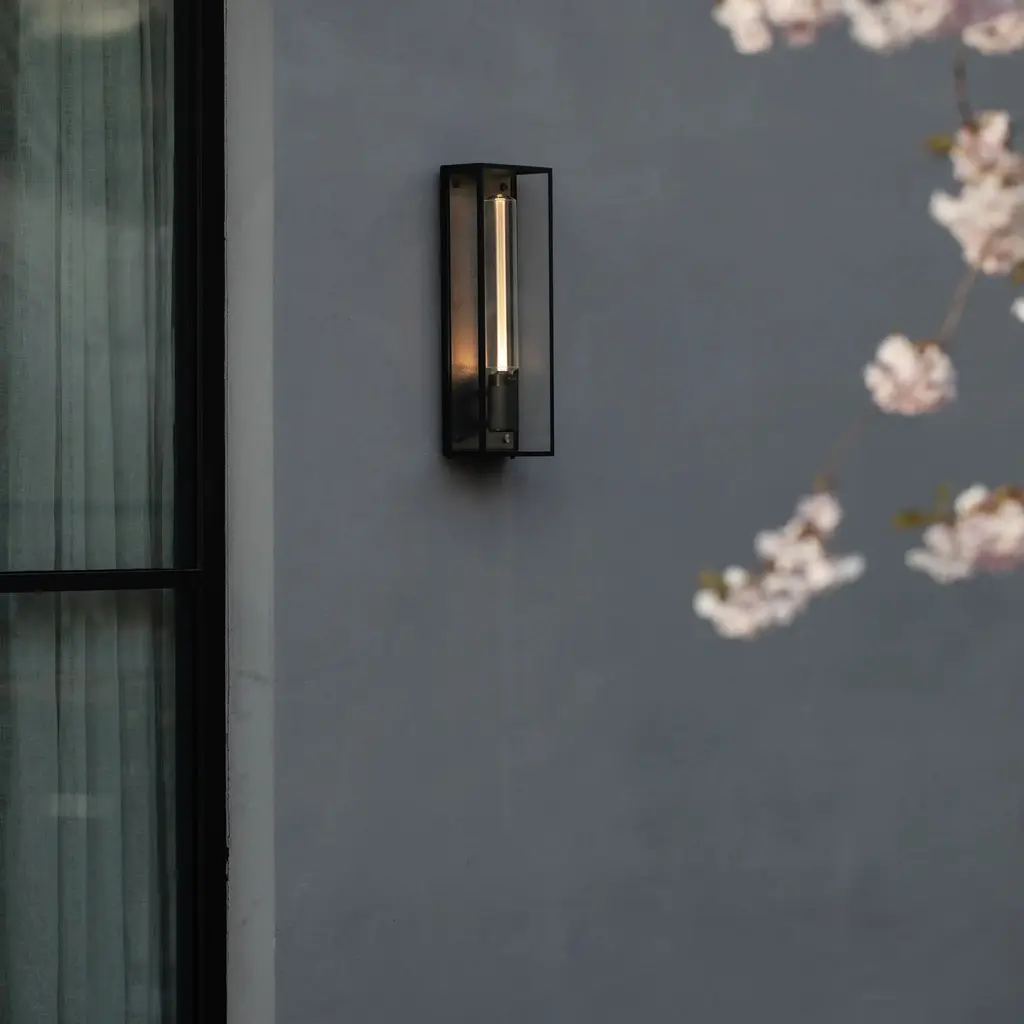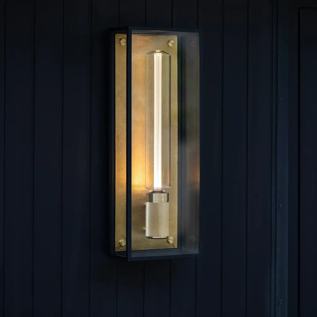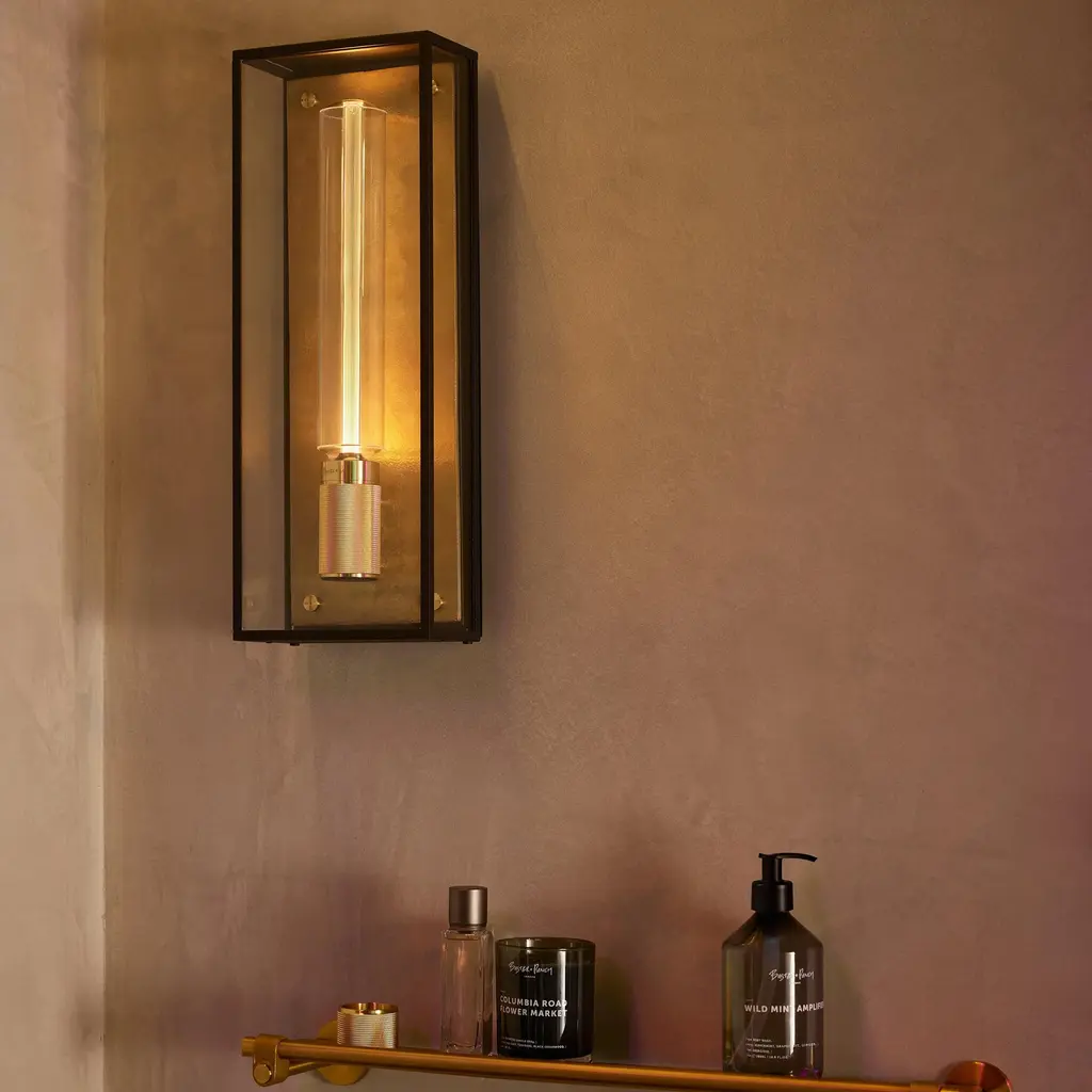 A raw and refined statement for your exterior, the Caged Outdoor Wall Sconce from Buster + Punch brings a touch of industrial elegance to any wet location. This stunning light is defined by its metal and glass cage, which is complemented by a rugged, sand-cast metal back panel. The design features a solid metal, cross-knurled lamp holder and Buster + Punch's signature coin screws, adding a final touch of machined detail. A fusion of industrial edge and robust construction, it’s a sophisticated and unconventional lighting solution for bathrooms, patios, and entryways. Highlights: