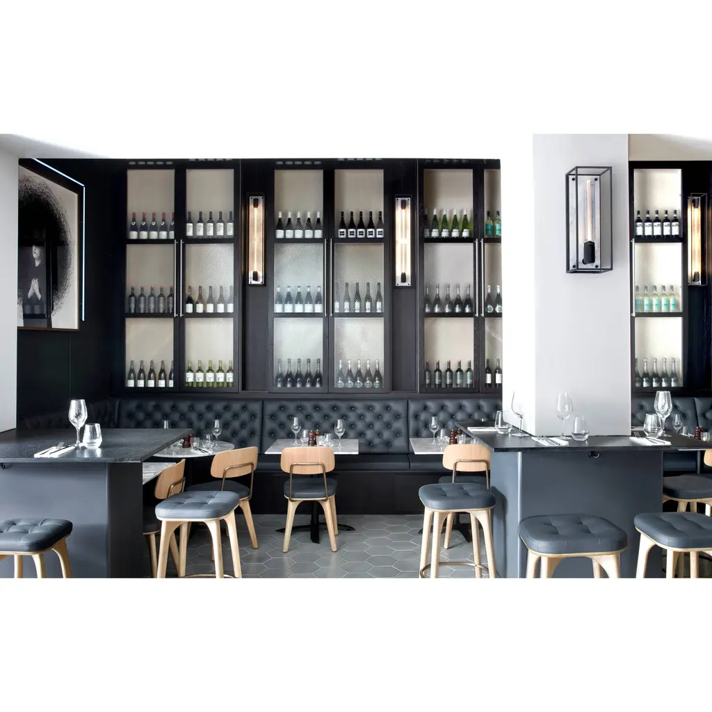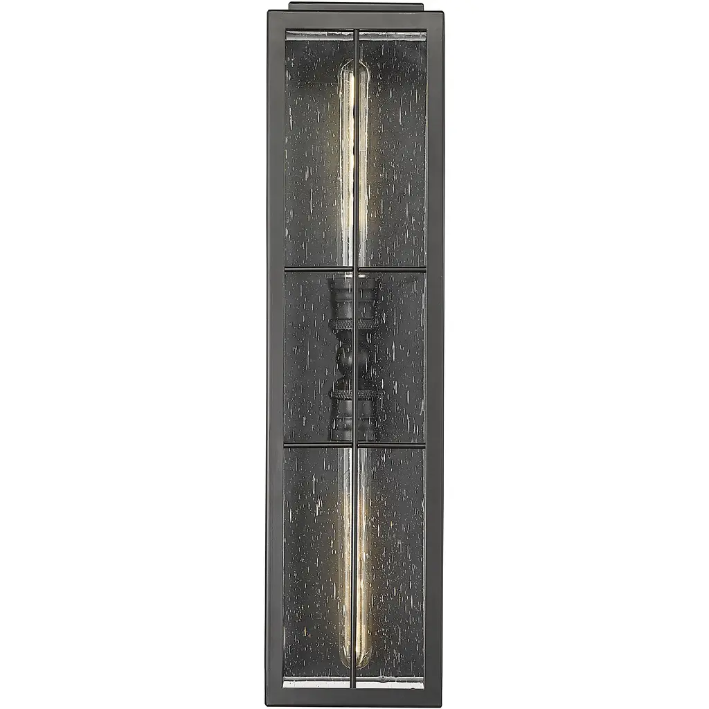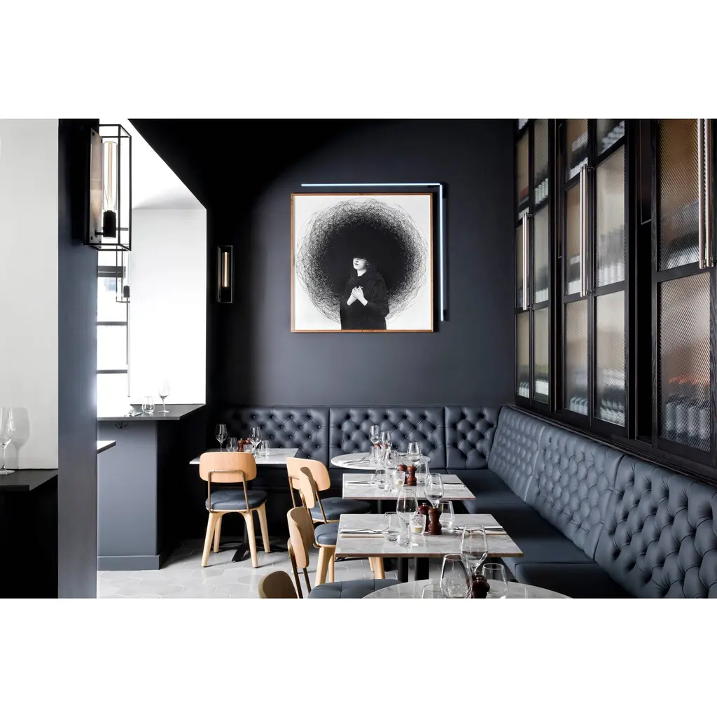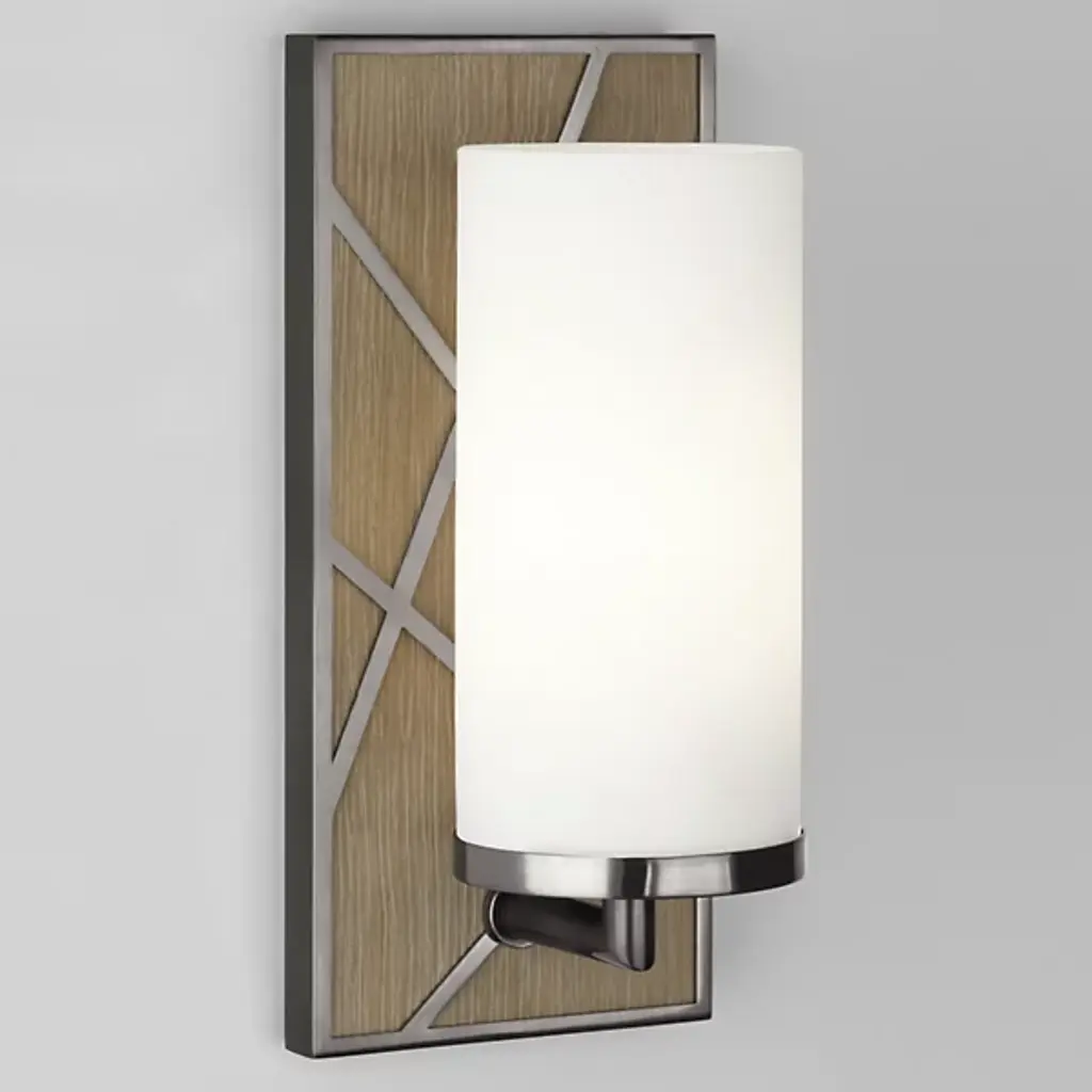 A wall light made from a matt black metal cage and comes with a polished white marble back panel.
