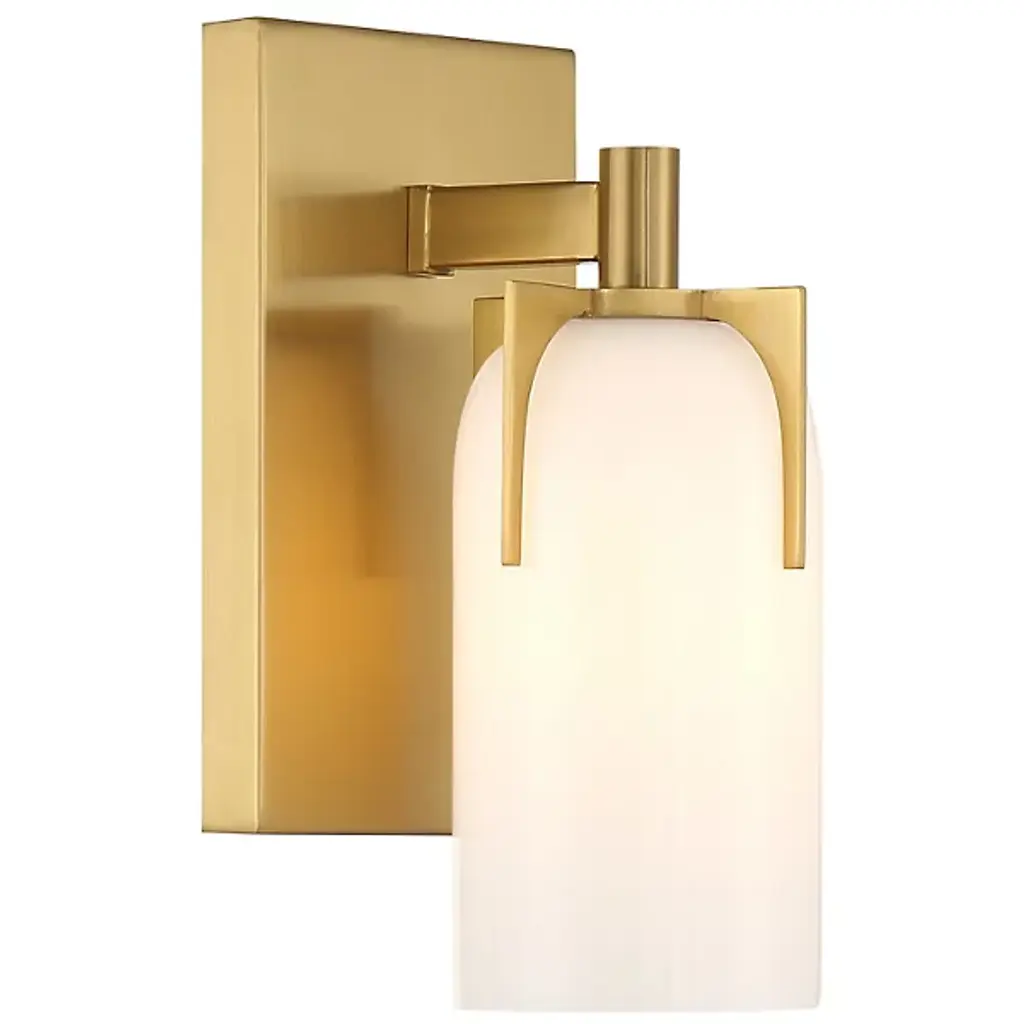 The Caldwell Bath Wall Sconce from Savoy House adds vintage elegance to your home. This stylish fixture features an etched white opal glass shade, beautifully held in place by dramatic, jewelry-like prongs. The prongs are finished in a rich Warm Brass, offering any room a luxurious and timeless appeal. The Caldwell Bath Wall Sconce blends classic design elements with modern flair, making it a perfect choice for those looking to enhance their interior décor with a fashionable, vintage-inspired piece.