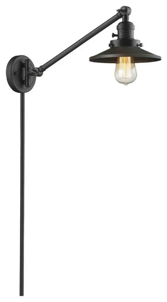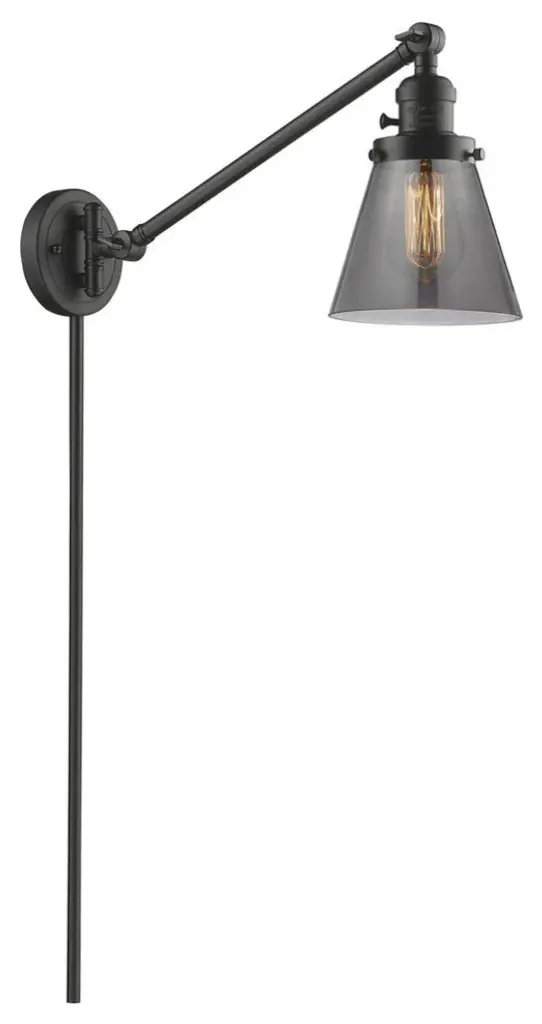 The Calen Swing Arm Plug-In Wall Sconce from Alder & Ore pairs a conical metal shade with a slender, posable arm structure. Great for walls or hallways, its transitional design nods at industrial character, creating something that is both refined and functional. Secured by a circle wall plate with a central hinge for its arm, fine fittings add delicacy to the metal structure, while the damp-listed lamping inside the conical shade is easily adjusted. Activated via a three-way socket switch, the shade can be positioned vertically for focused task lighting or moved offset for a warm wash of light.