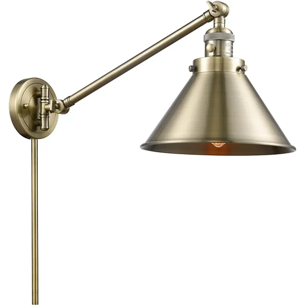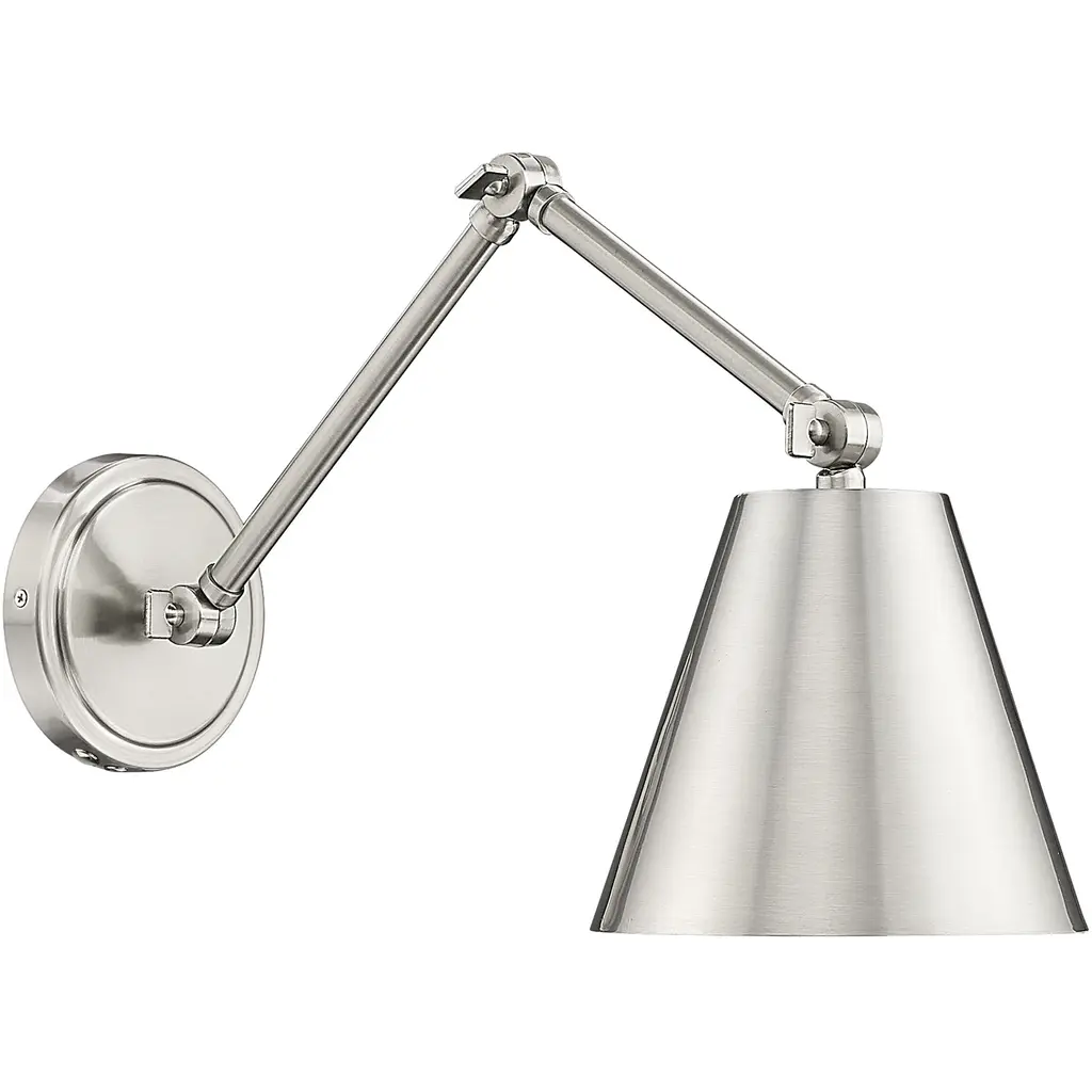 The Calen Swing Arm Plug-In Wall Sconce from Alder & Ore pairs a conical metal shade with a slender, posable arm structure. Great for walls or hallways, its transitional design nods at industrial character, creating something that is both refined and functional. Secured by a circle wall plate with a central hinge for its arm, fine fittings add delicacy to the metal structure, while the damp-listed lamping inside the conical shade is easily adjusted. Activated via a three-way socket switch, the shade can be positioned vertically for focused task lighting or moved offset for a warm wash of light.