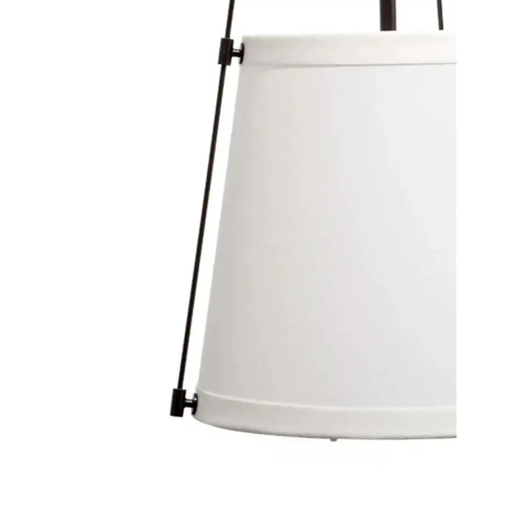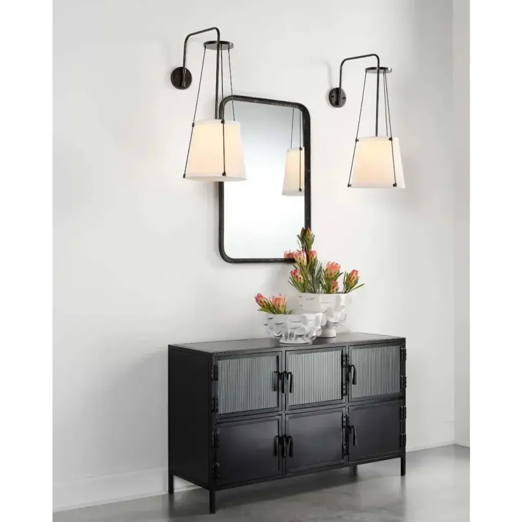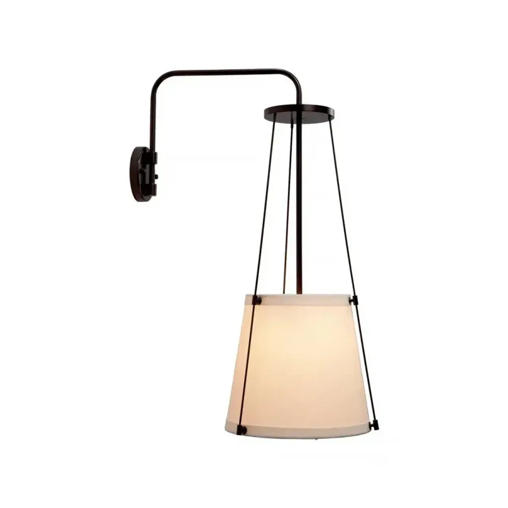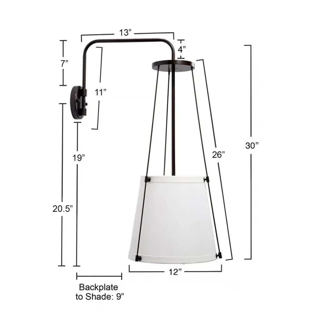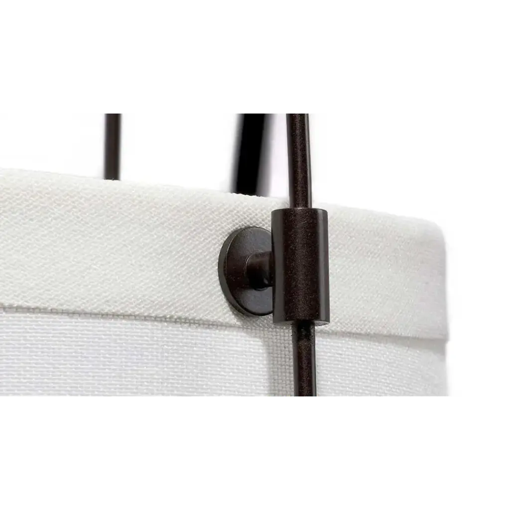 The sconce is suspended from a delicate metal framework with a modern metallic finish. Effortlessly appealing, it features an off-white drum shade in linen to softly diffuse its glow. Designer tip: display in pairs to flank a mirror, window, or doorway!