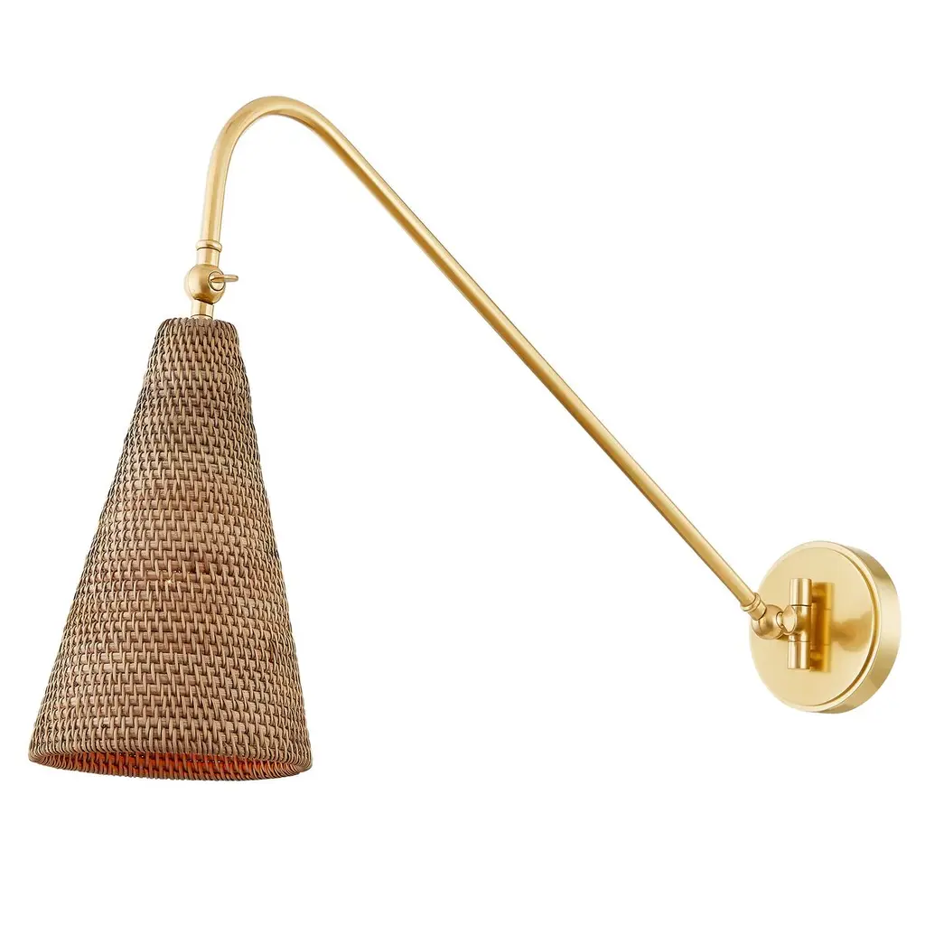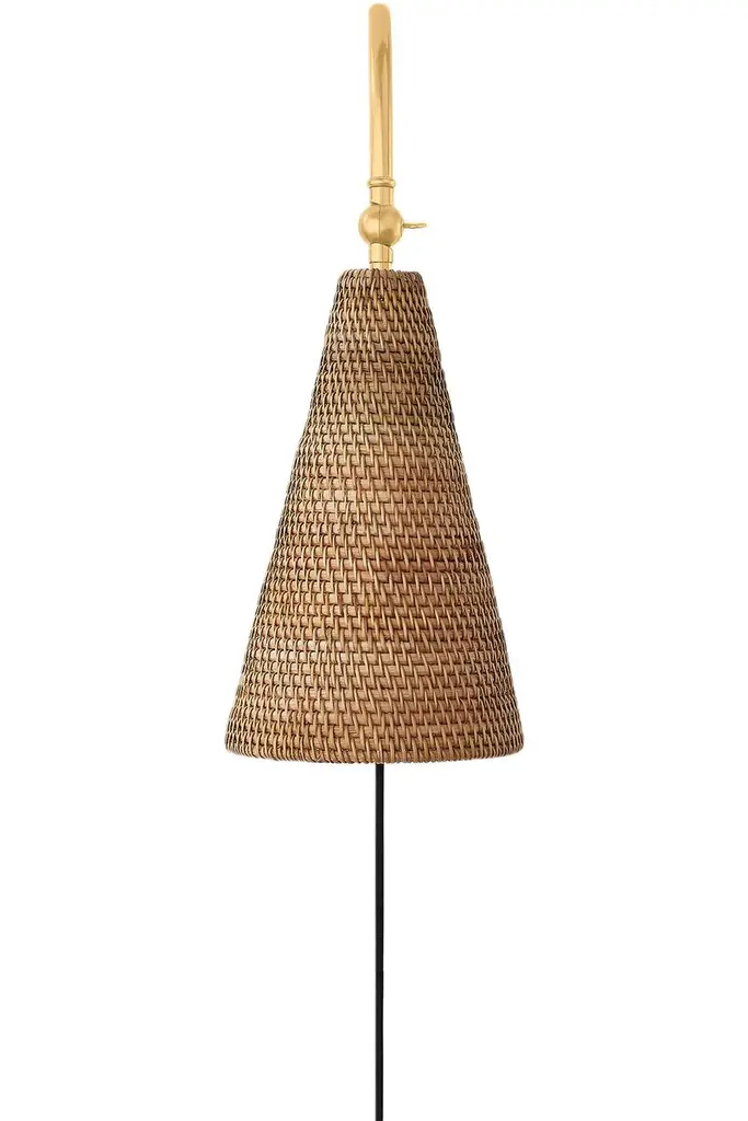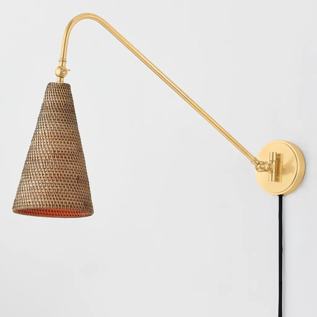 Calithea Plug-in Sconce, Aged Brass/vintage Natural Wicker