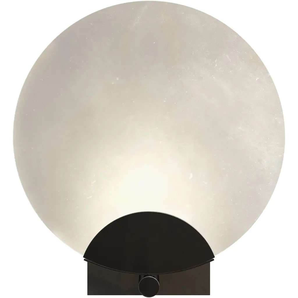 The beauty and drama of the Callisto 1-Light Sconce cannot be overstated. Made by hand in Vermont, this stunning wall-mounted light exudes elegance with its Alabaster stone disc. Chosen as his muse, designer Ori Goldberg selected this age-old organic soft stone element used throughout history for carving decorative artifacts, to contrast the softness of the stone with the strong line of the Callisto’s metal frame.