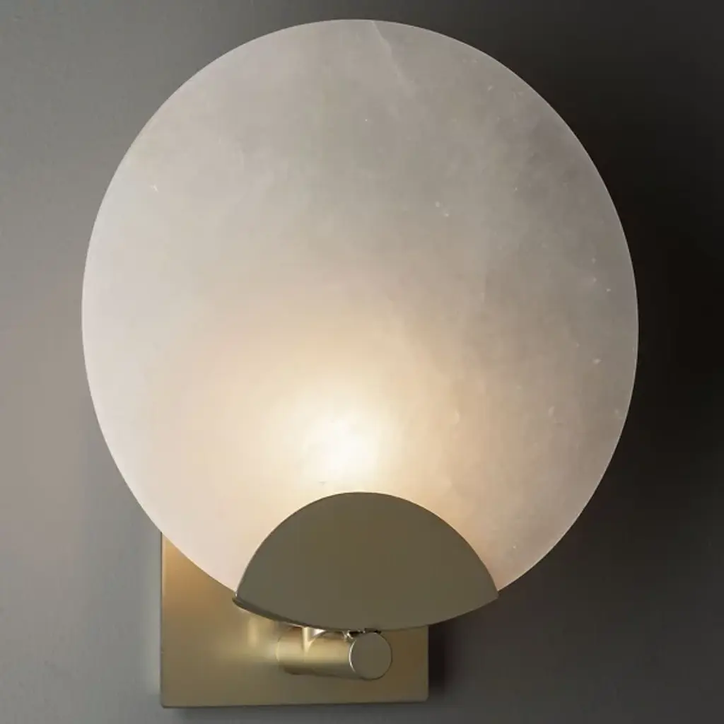 A timeless design crafted with time-honored techniques and materials. The Callisto Wall Sconce by Hubbardton Forge features a large, smooth disc of genuine alabaster, held within a minimal metal holder. Naturally translucent, the alabaster transforms the light produced by the bulb behind it into a soft wash of ambience. When the sconce is illuminated, the light also shows off the stone’s unique markings, giving modern dining areas and living spaces a dramatic touch of natural elegance. Designed by Ori Goldberg.