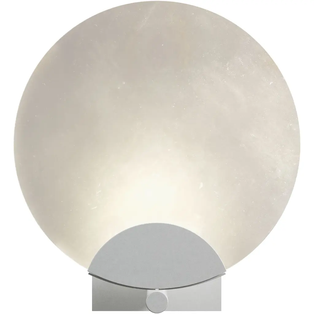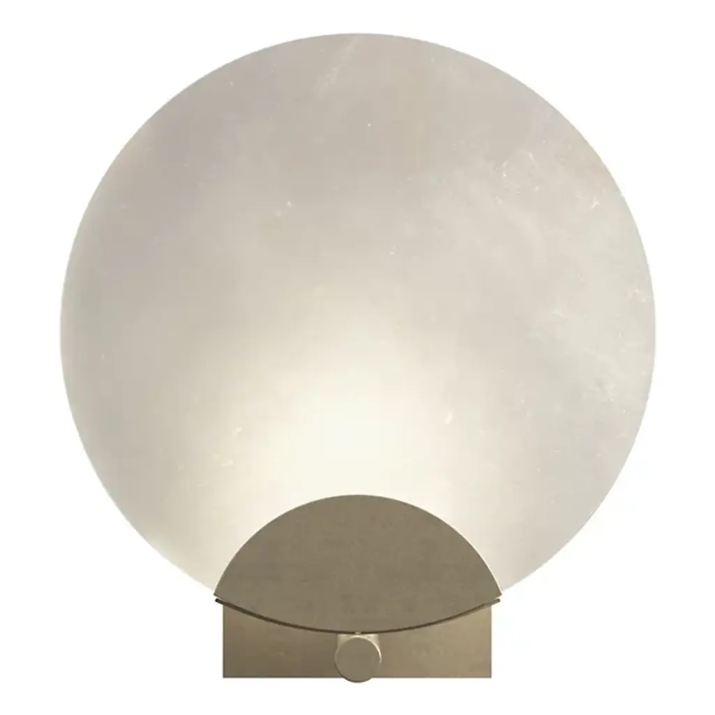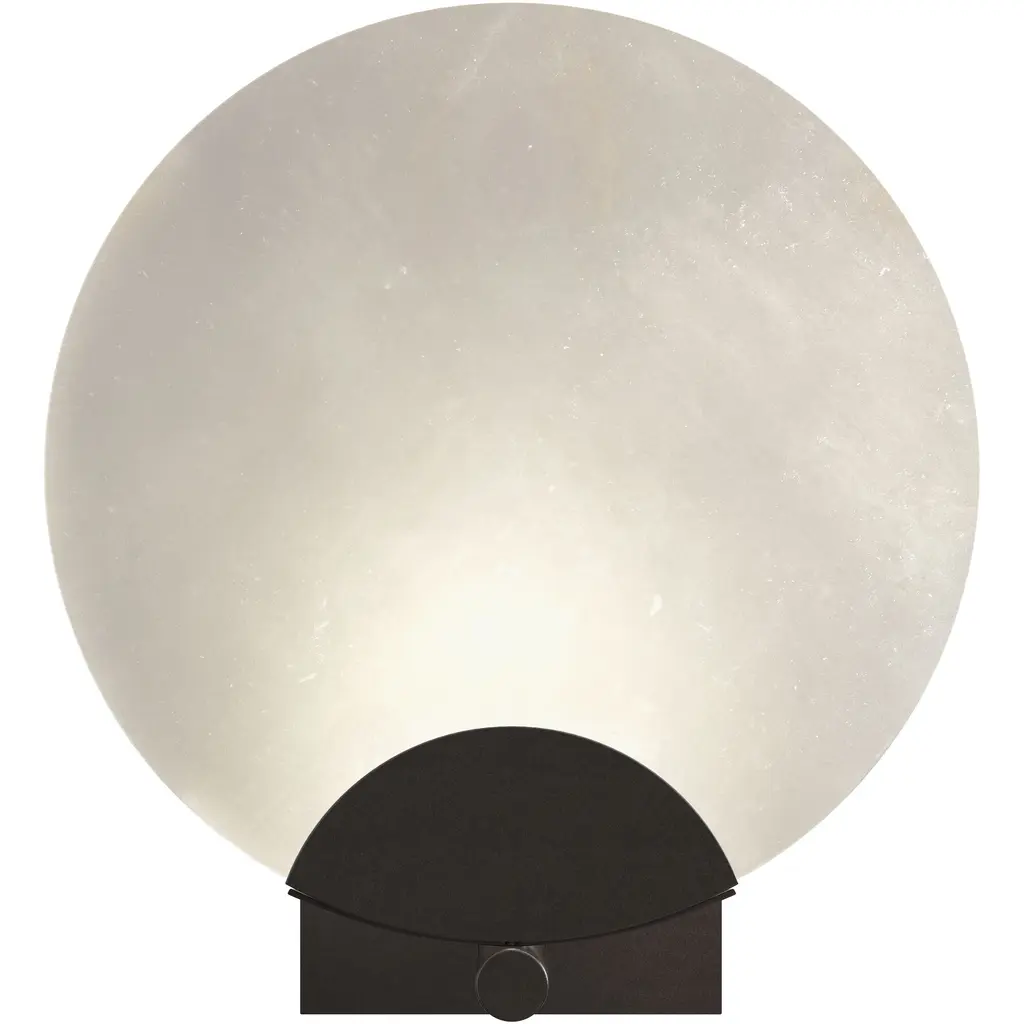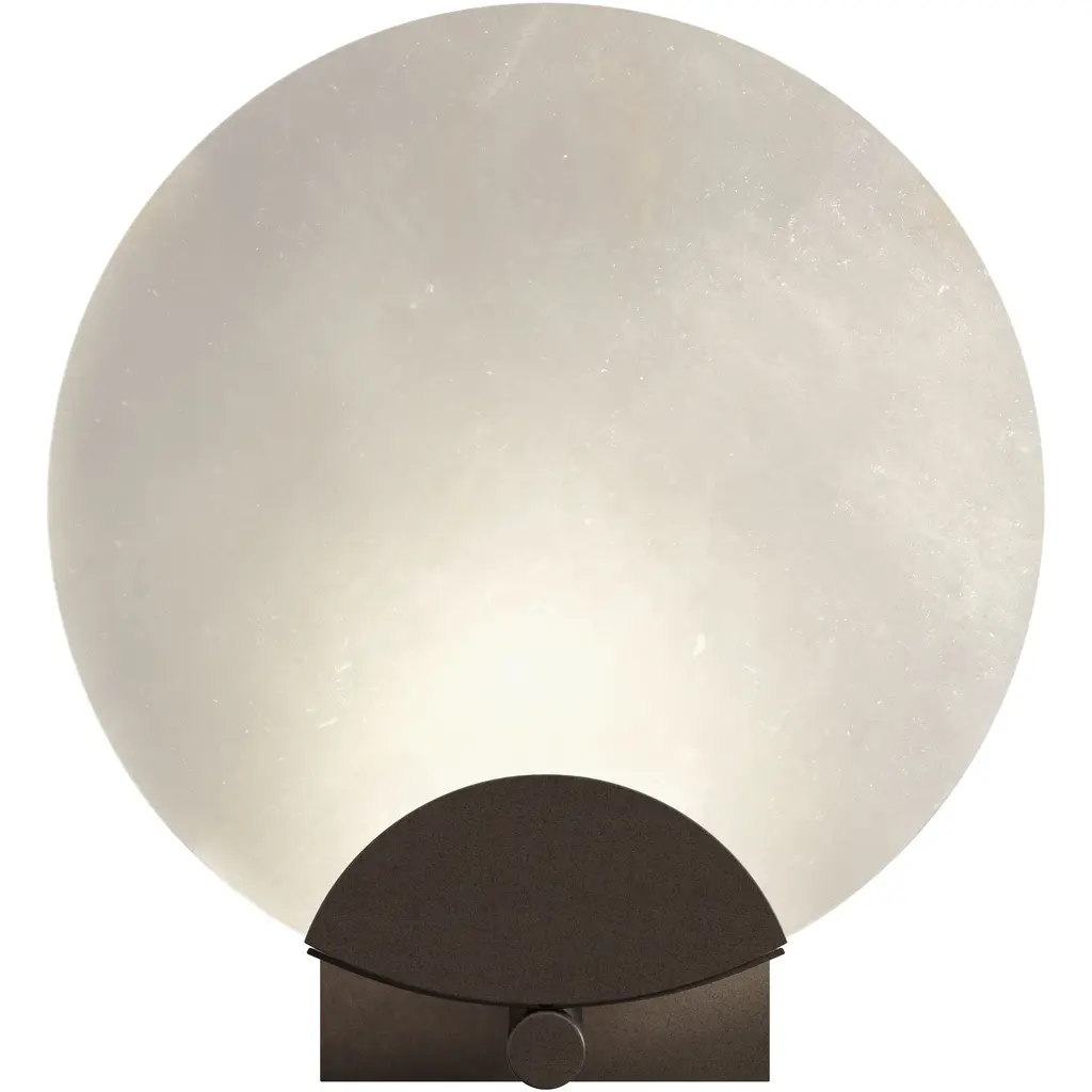 A timeless design crafted with time-honored techniques and materials. The Callisto Wall Sconce by Hubbardton Forge features a large, smooth disc of genuine alabaster, held within a minimal metal holder. Naturally translucent, the alabaster transforms the light produced by the bulb behind it into a soft wash of ambience. When the sconce is illuminated, the light also shows off the stone’s unique markings, giving modern dining areas and living spaces a dramatic touch of natural elegance. Designed by Ori Goldberg.