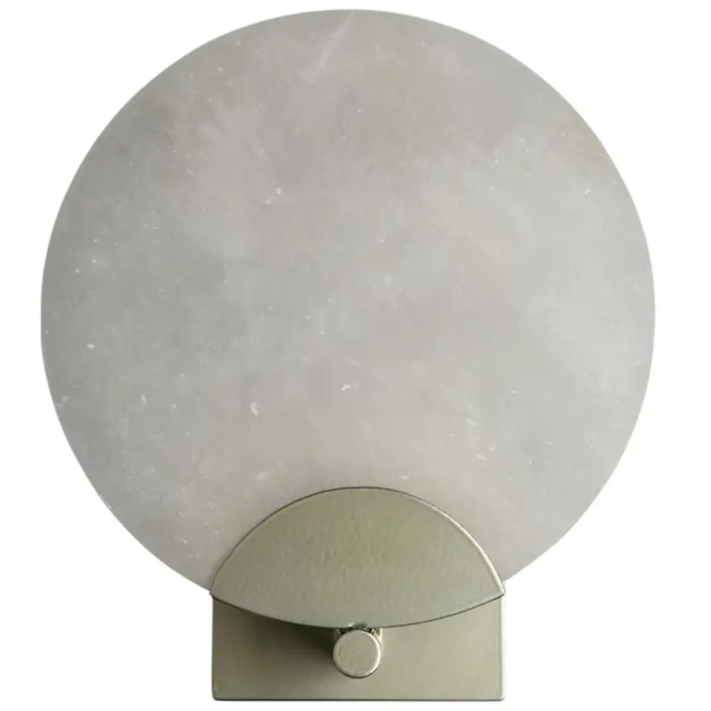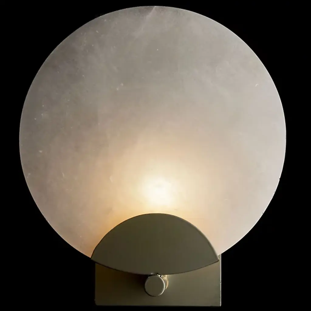 A timeless design crafted with time-honored techniques and materials. The Callisto Wall Sconce by Hubbardton Forge features a large, smooth disc of genuine alabaster, held within a minimal metal holder. Naturally translucent, the alabaster transforms the light produced by the bulb behind it into a soft wash of ambience. When the sconce is illuminated, the light also shows off the stone’s unique markings, giving modern dining areas and living spaces a dramatic touch of natural elegance. Designed by Ori Goldberg.