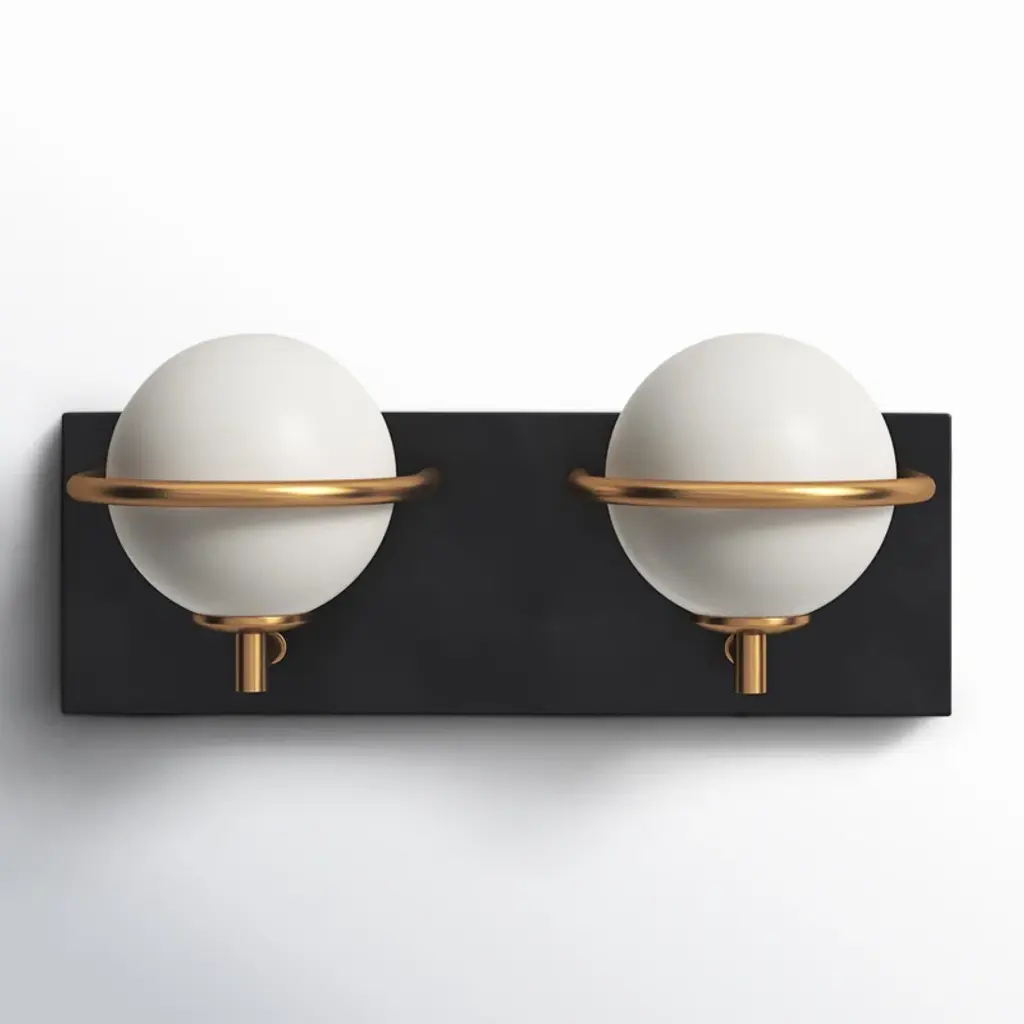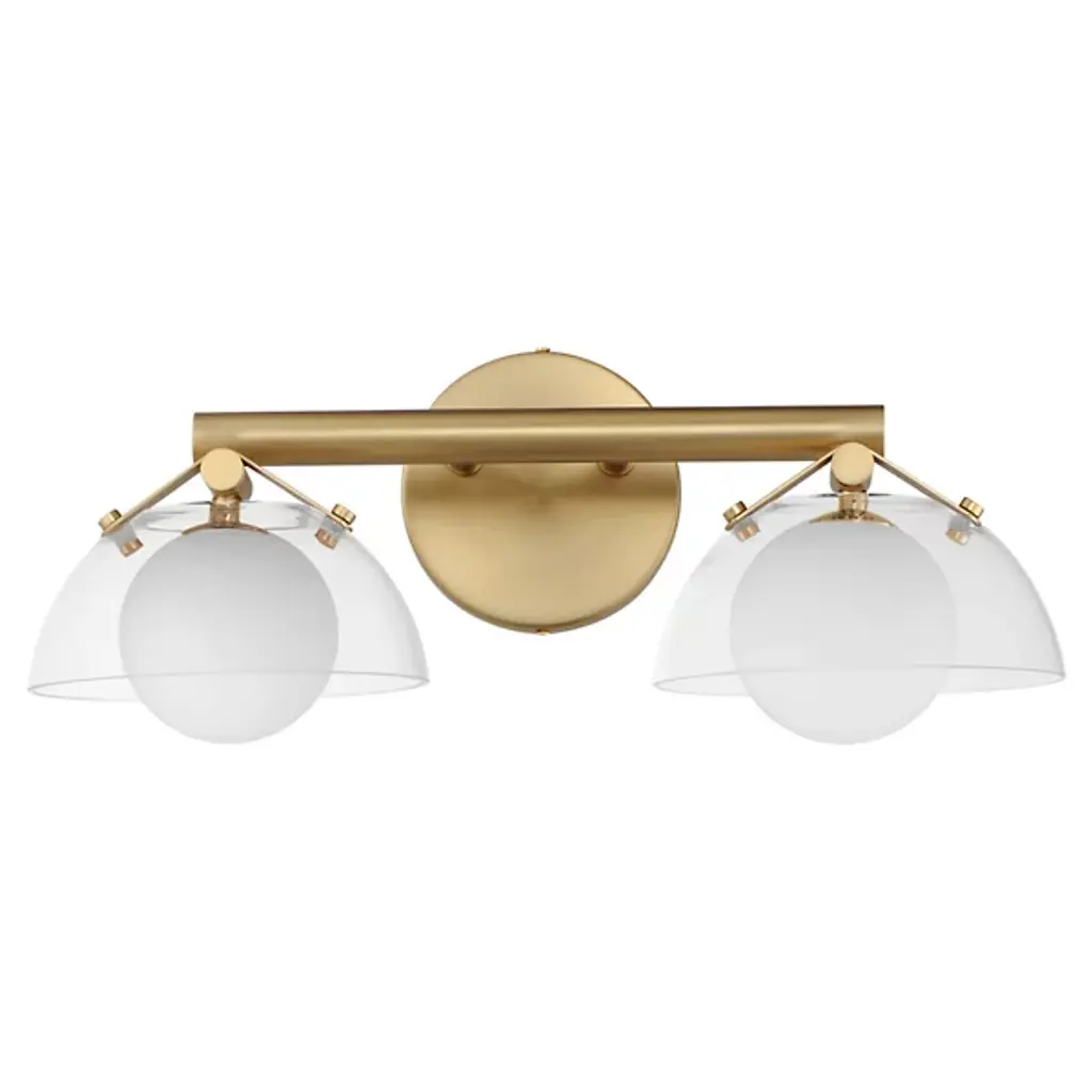 The Calvino LED Arched Wall Sconce from Visual Comfort Signature, formerly known as Visual Comfort, catches the eyes from every viewing angle with a dynamic composition of bright, playful shapes. This sconce takes a page from mid-century design in its graphic quality and two-toned colorway. A compact backplate lets the piece rest in the tightest spaces. The slender arm in front directs the bulbs up, down, and forward. Focused by the charming lamp heads, the bulbs turn on to produce ambient light with depth. Clear glass shades help distribute the light softly while offering an attractive reflective note.