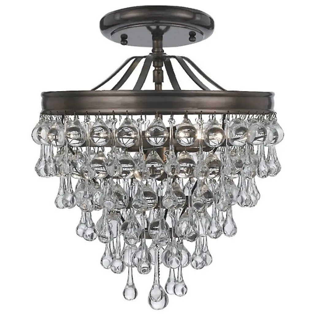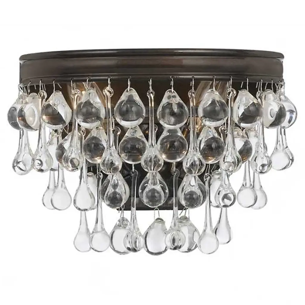 Vibrant finishes mixed with two different shapes of blown clear crystal glass gives you the timeless fixture that is the Calypso Wall Sconce by Crystorama. The crystals cascades over the fixture, acting as the shade. Using two light bulbs, this fixture gives ample about of light to brighten up any room it is install it in.