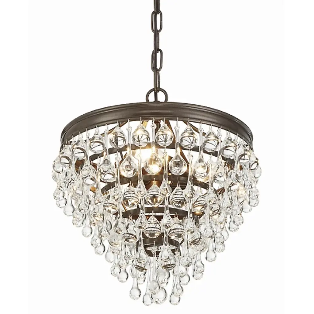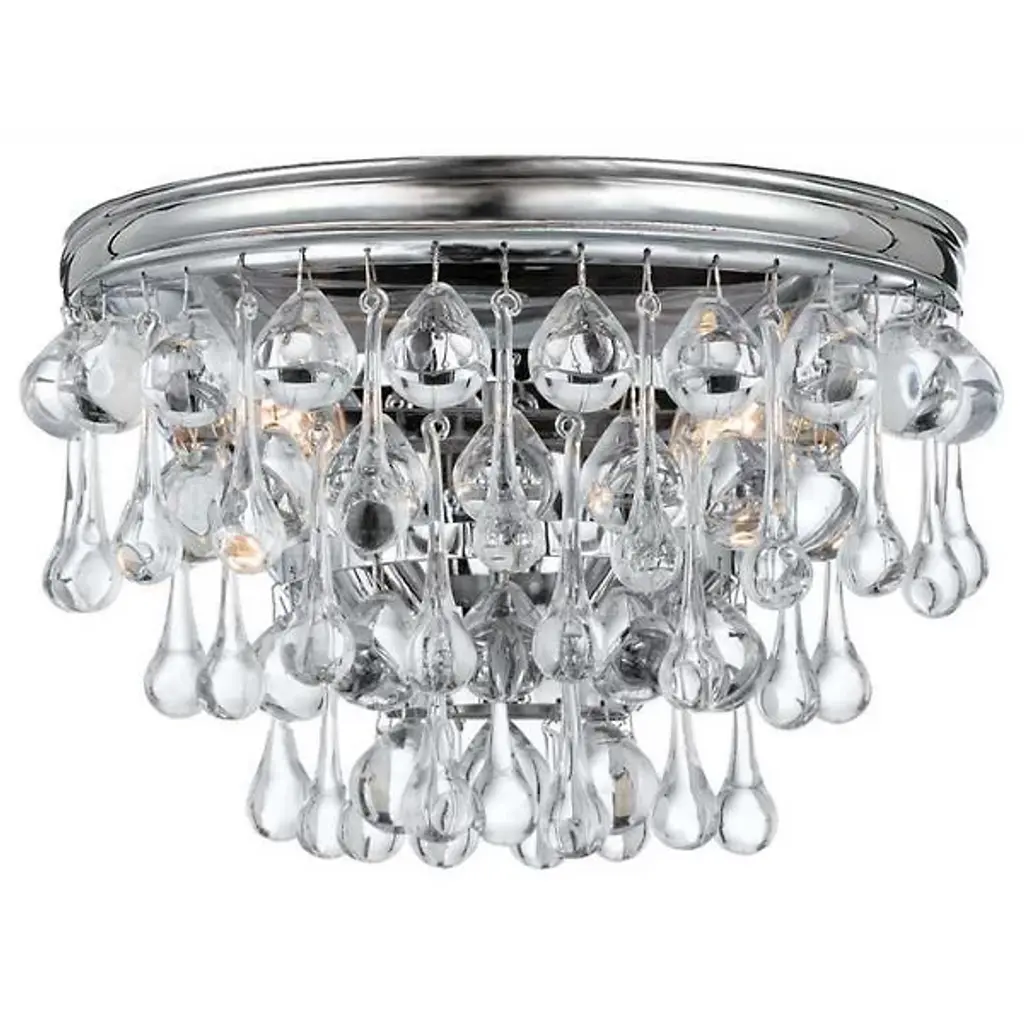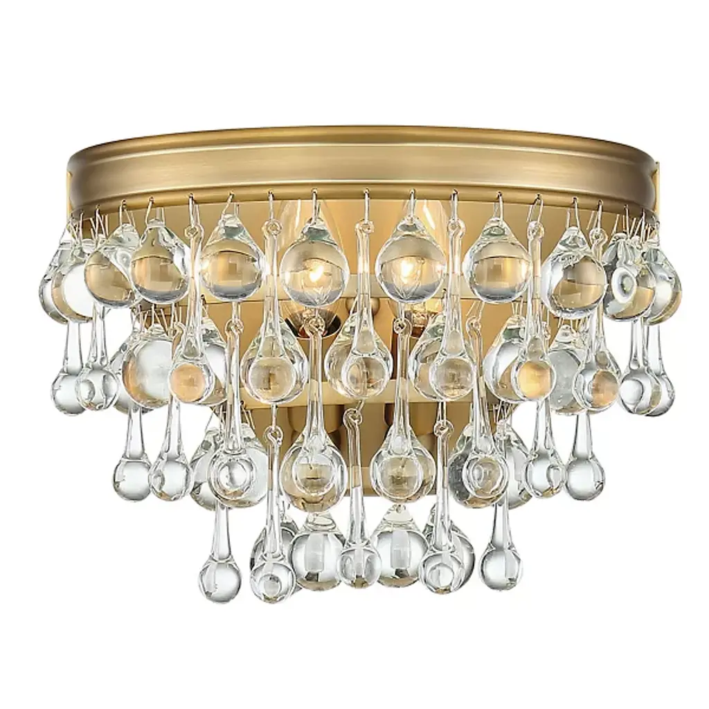 Vibrant finishes mixed with two different shapes of blown clear crystal glass gives you the timeless fixture that is the Calypso Wall Sconce by Crystorama. The crystals cascades over the fixture, acting as the shade. Using two light bulbs, this fixture gives ample about of light to brighten up any room it is install it in.