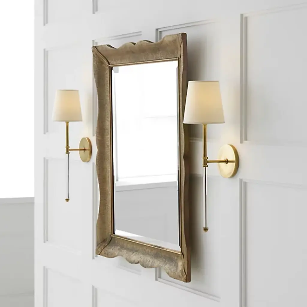 The Visual Comfort Signature, formerly known as Visual Comfort, Camille Sconce adds a layer of refined aesthetic to interior walls and hallways, making a once bland space into a polished interior. The archetypal torch shape is defined by its linen drum shade which, once lit, provides a soft glowing light that fills the space. A sleek metal holder mounts by a round wall plate, while its crystal clear extension refracts the warm glowing lights from above. Install the Camille Sconce as the picturesque beauty that takes your interior to a whole new level.