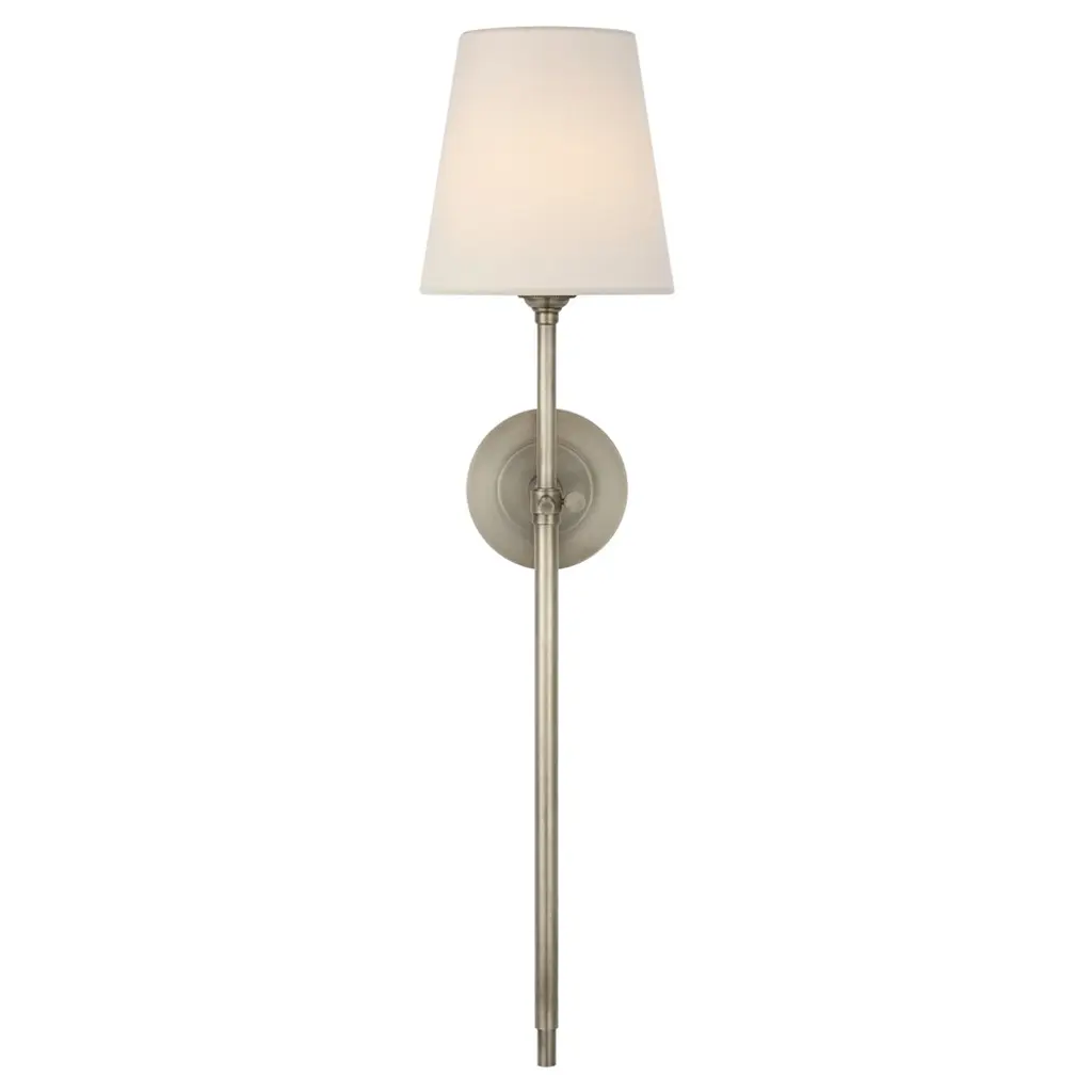 The Camille Tail Wall Sconce by Visual Comfort Signature, formerly known as Visual Comfort, is a handcrafted home accent that blends gorgeously with both modern and contemporary décor themes. Its natural paper shade delivers a diffused illumination that’s calming in nature, while a variety of finish and glass options allows décor enthusiasts to choose what best matches their established motif. Have this wall sconce installed in a master suite or waiting room and instantly strengthen the look and feel of your interior space.