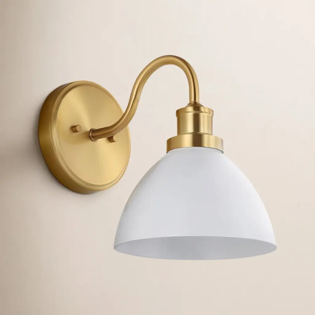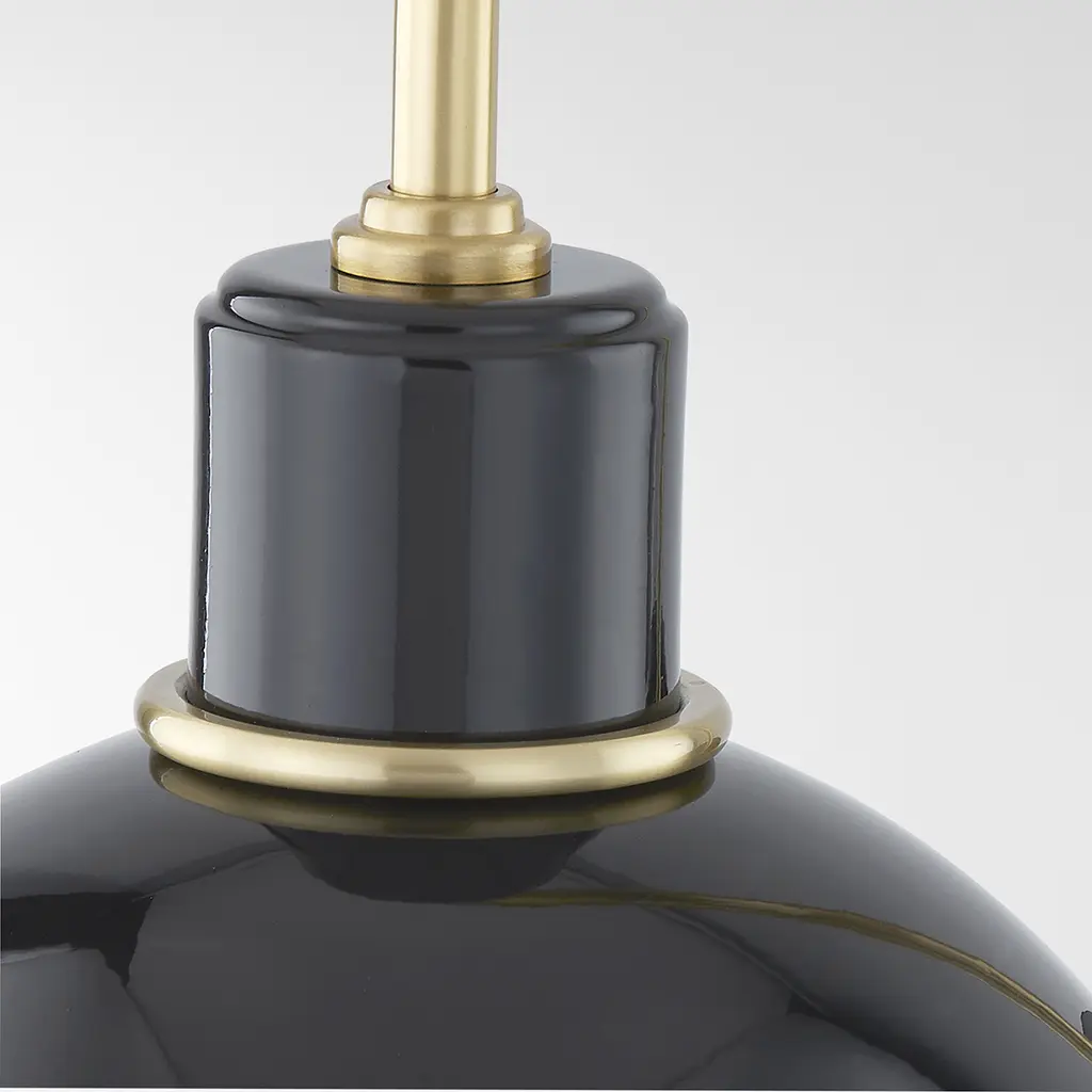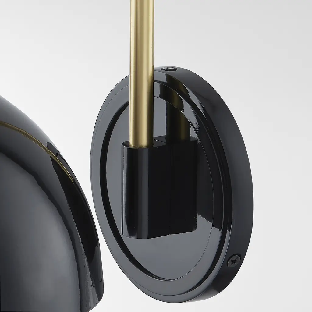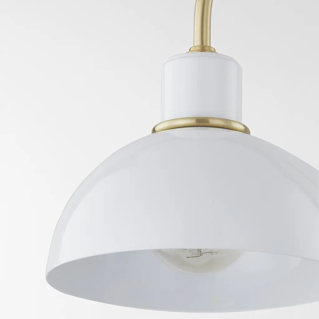 The Camille wall sconce and pendant draws her best features from French design. Aged brass details pop against the glossy black or white dome outfitted with a white interior. From an industrial form to Mid-century styling, Camille may be vintage inspired but was certainly made for modern homes.