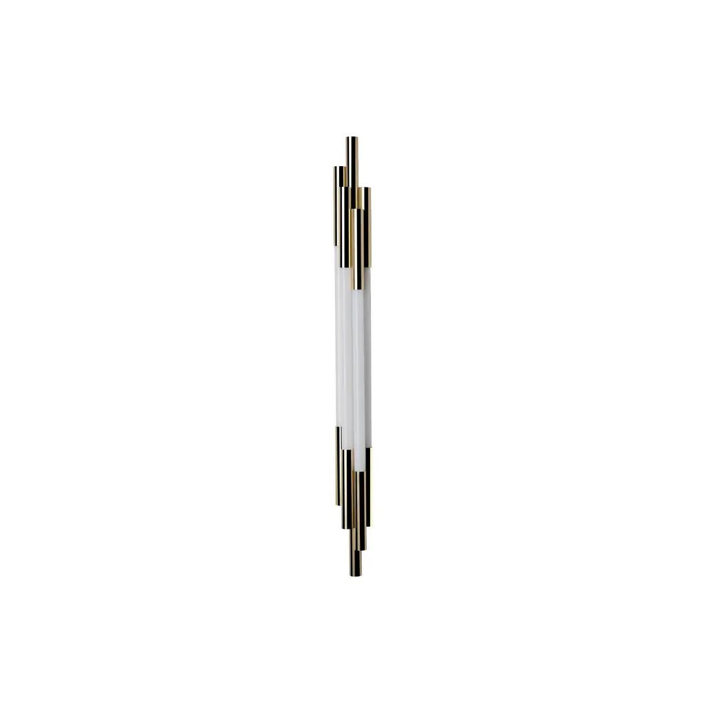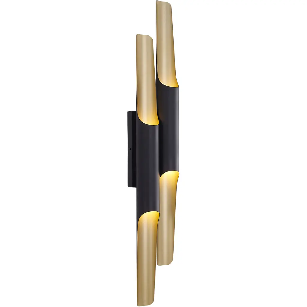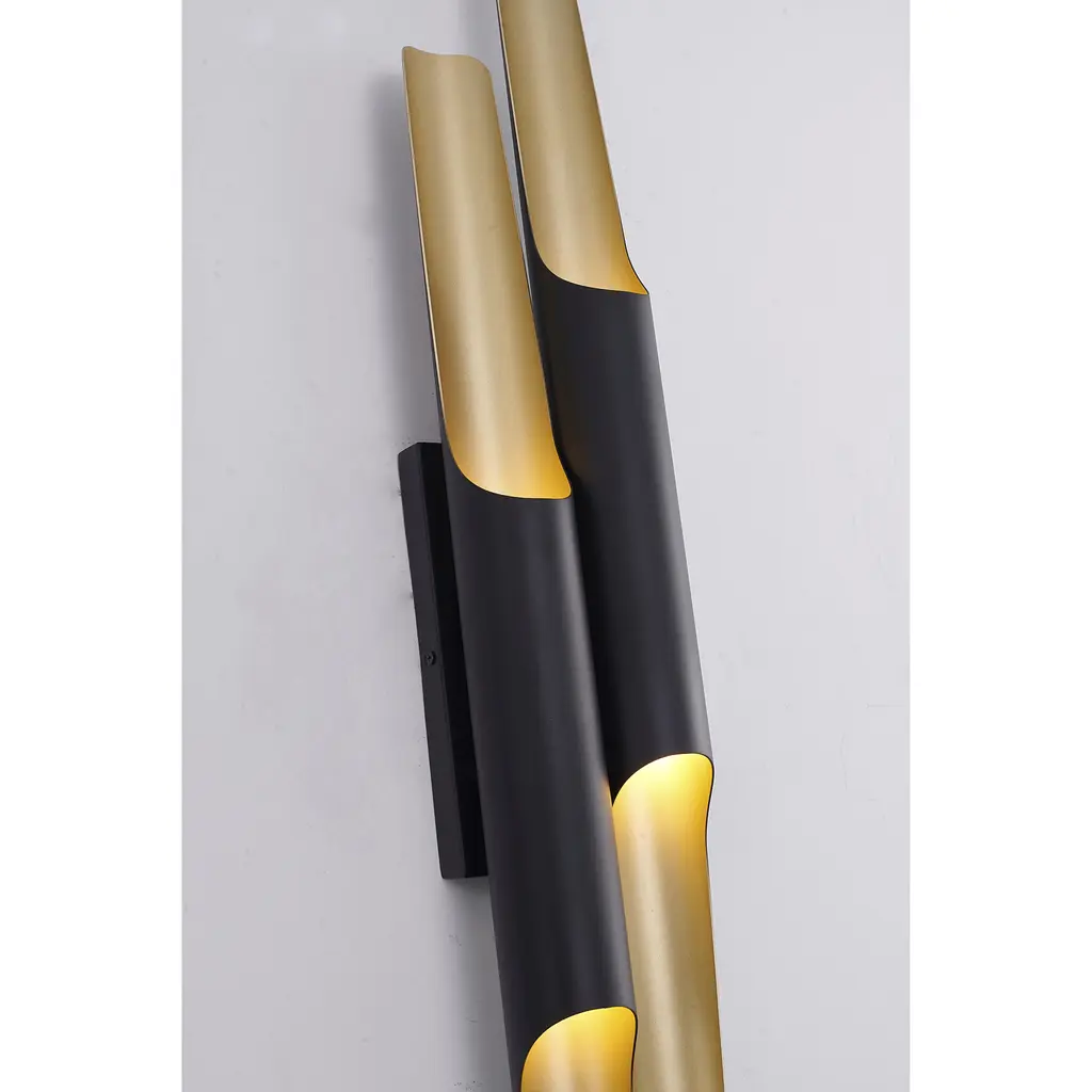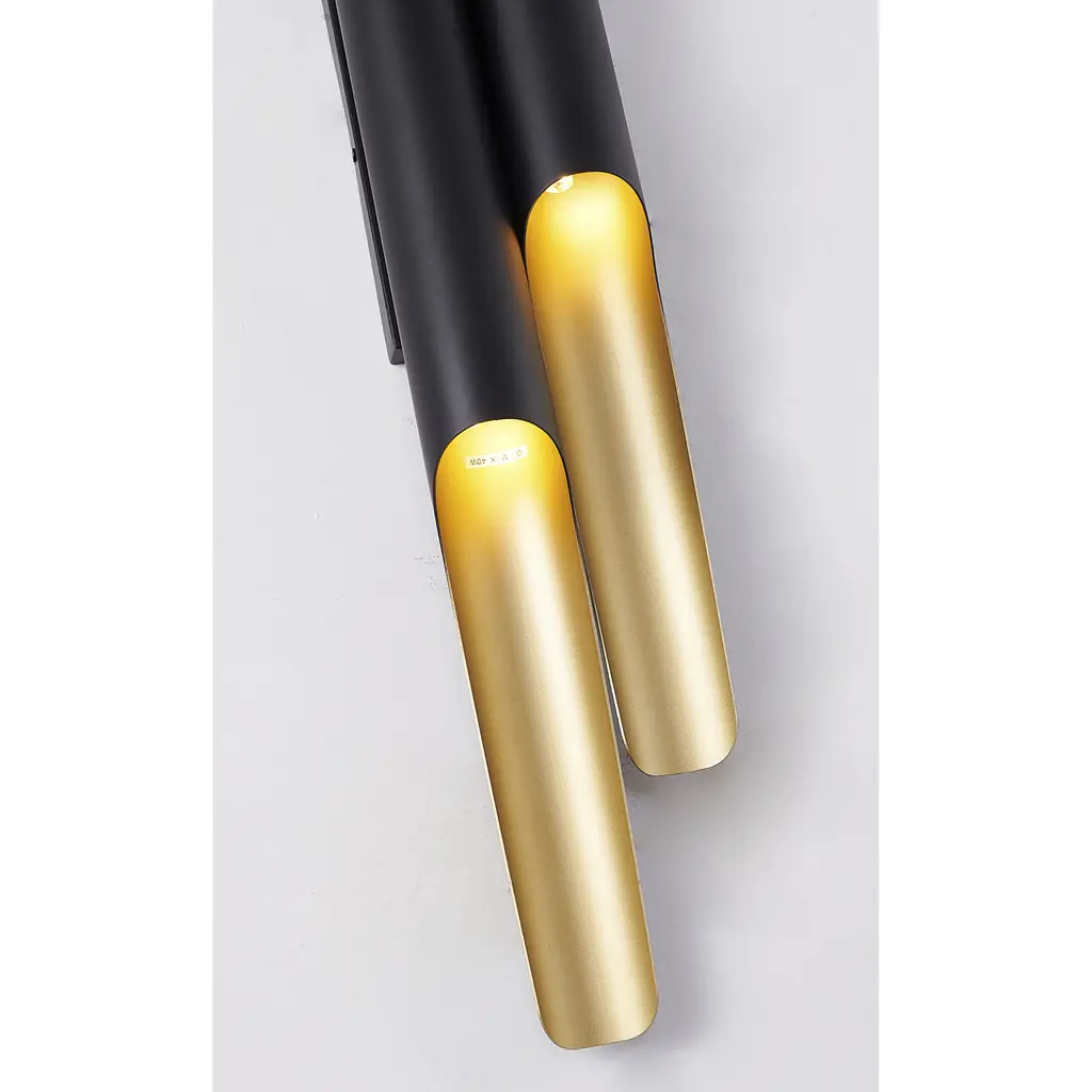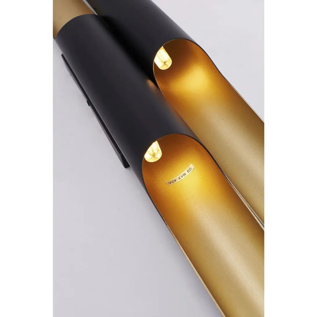 The transitional wall sconce with gold interior is a sleek and modern lighting fixture that adds a touch of sophistication to any room. With a black tube exterior and a gold interior, this sconce has a unique and eye-catching design that can complement a variety of interior design styles. The sconce is designed to be installed on a wall, making it a great option for rooms with limited floor space. The 4xG9 bulbs (Not Included) provide a bright and warm glow, making it a great option for illuminating such as bedroom, living room, or hallway.