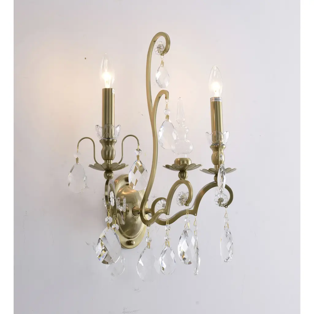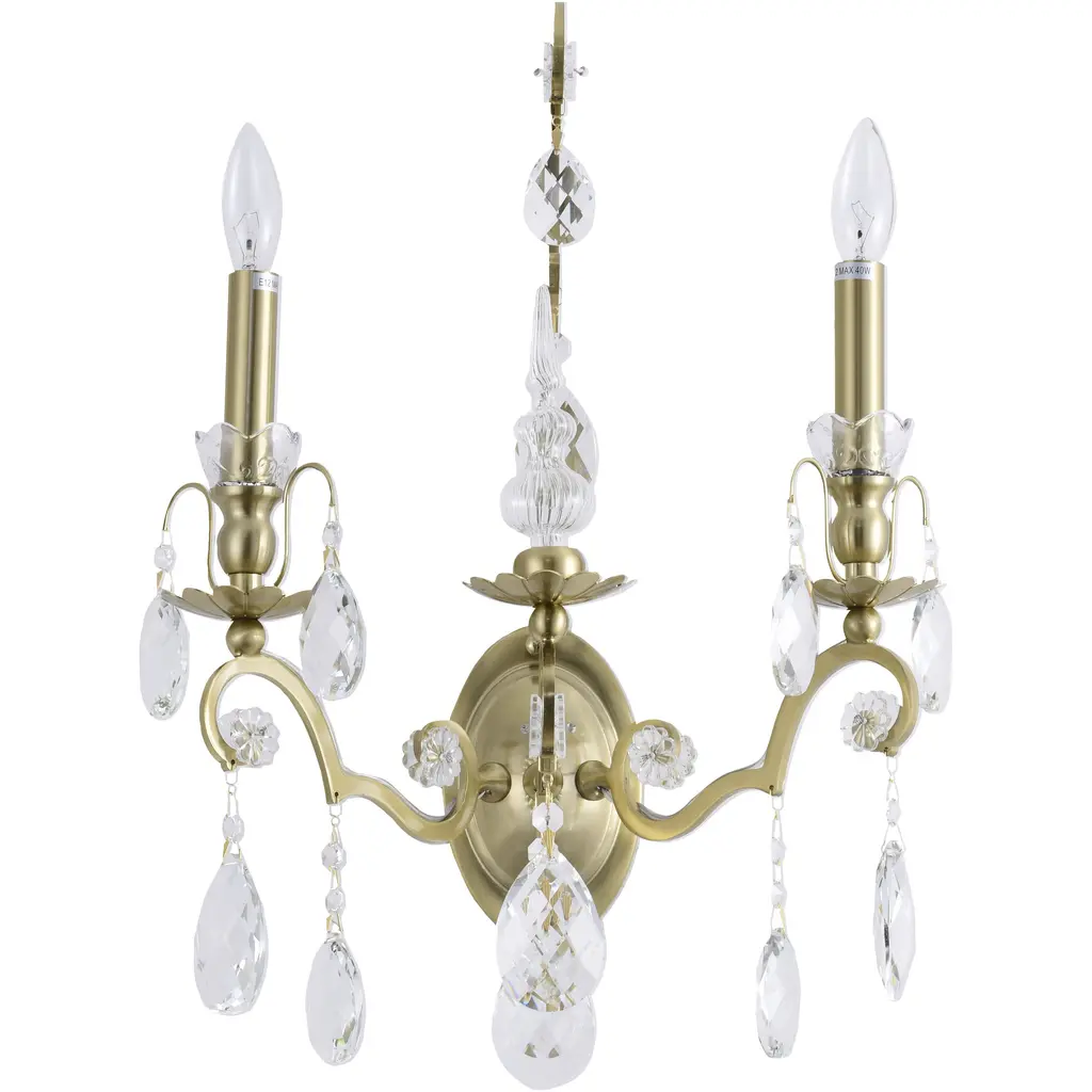 The brass frame crystal transitional wall sconce is a stunning lighting fixture that adds a touch of elegance to any room. With its brass frame and crystal elements, this sconce has a vintage and sophisticated look that can complement a variety of interior design styles. Measuring 14 inches width, 16 inches high, and 10 inches deep, this sconce is designed to be mounted on a wall, making it a great option for rooms with limited floor space. The two E12 base bulbs (Not Included) provide a bright and warm glow, making it a great option for illuminating a small to medium-sized room. Whether you're looking to add some ambiance to a living room, bedroom, or simply brighten up a hallway, this sconce is a great choice for anyone looking to add a touch of sophistication to their space.