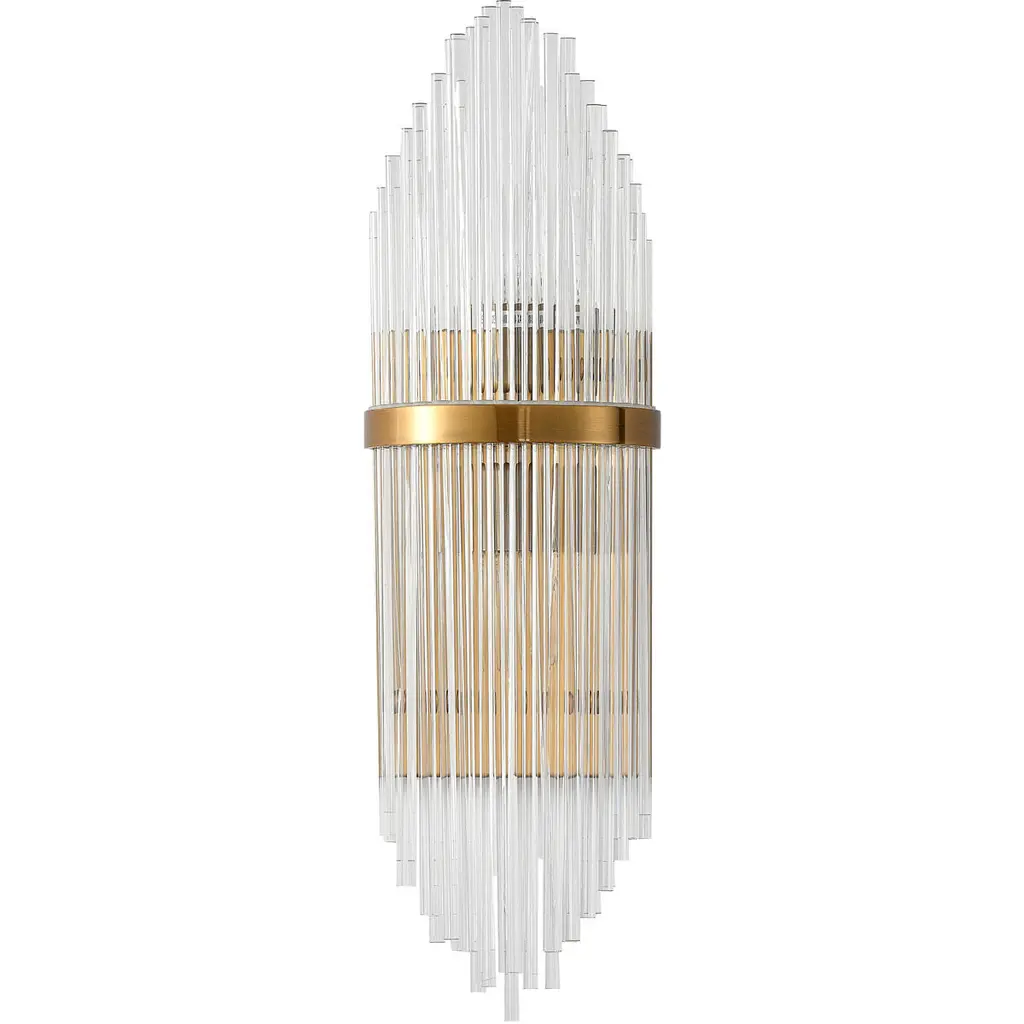 This transitional wall sconce is a unique and stylish lighting fixture that adds a touch of vintage charm to any room. Featuring an antique brass metal frame and clear glass rods, this sconce measures 8.6 inches in width, 5.3 inches in depth, and 29.5 inches in height. The 3xE12 base and 60W bulbs (Bulbs Not Included) provide ample lighting, while the clear glass rods add a touch of modernity and sophistication. Perfect for living rooms, bedrooms, or hallways, this wall sconce is an excellent choice for anyone looking to add some character and elegance to their space.