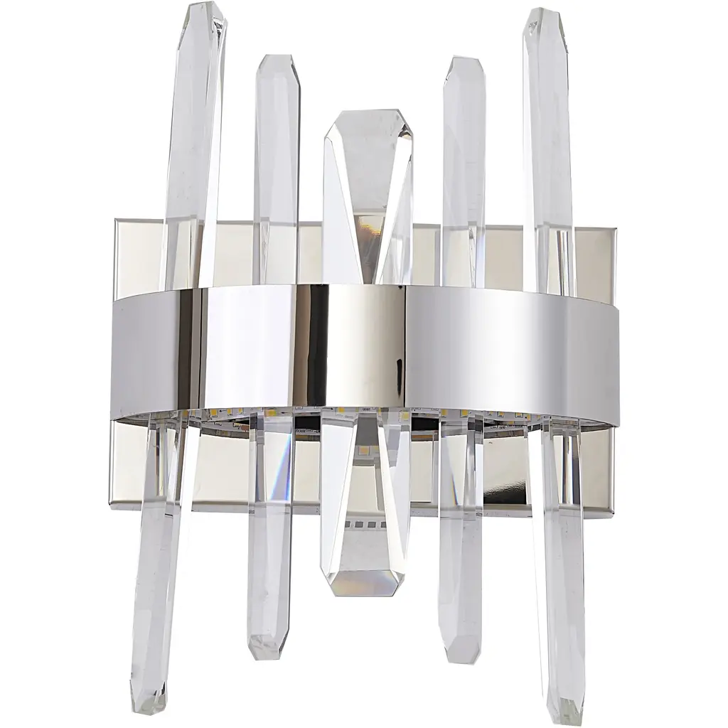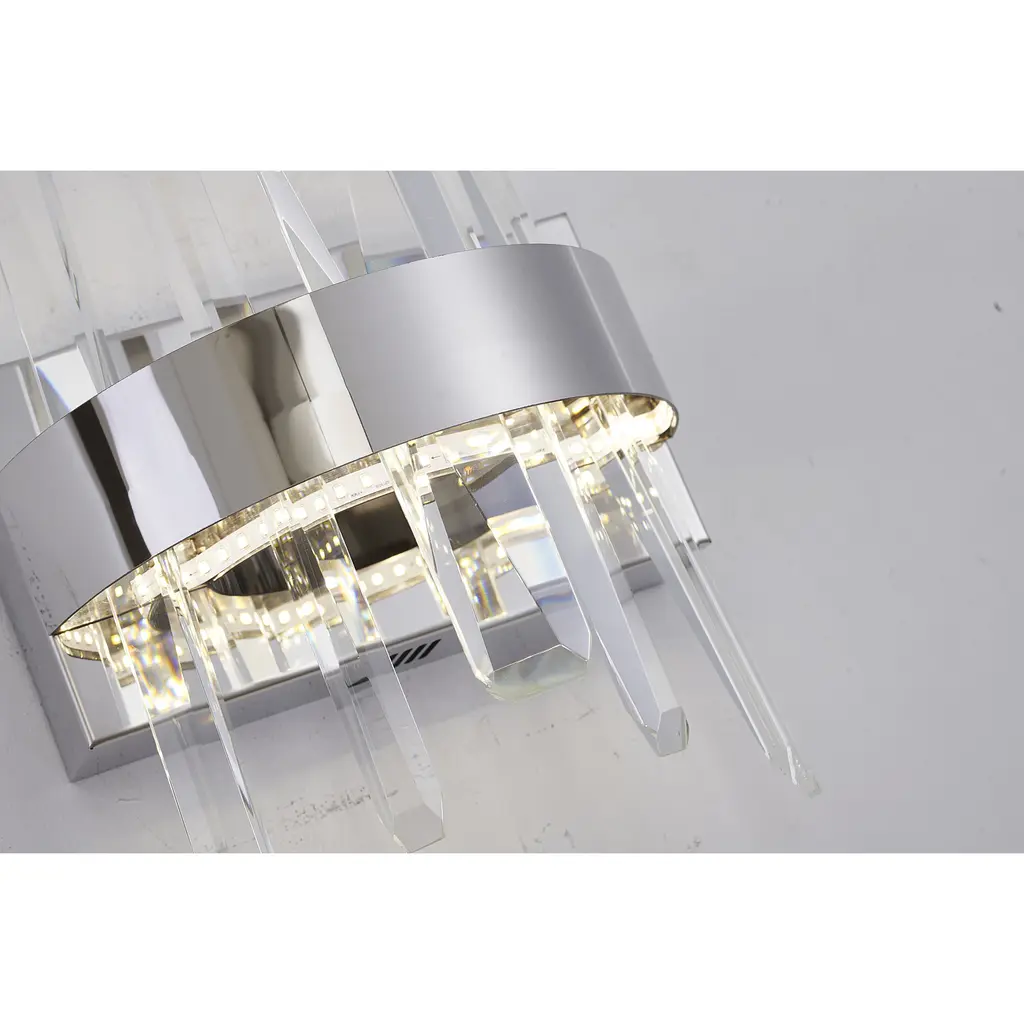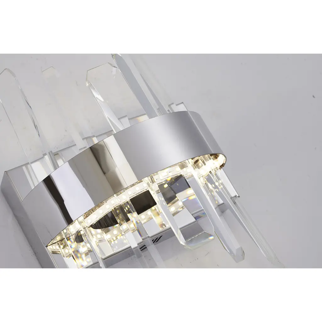 This contemporary wall sconce is a stylish addition to any room. With a length of 10 inches, a height of 12 inches, and a depth of 4 inches, it's a compact and elegant fixture that's perfect for illuminating a living room, bedroom, hallway, or bathroom. The chrome stainless steel frame provides a durable and long-lasting finish, while the clear crystal adds a touch of luxury and sophistication. The fixture is equipped with a 10W LED bulb that produces a bright and energizing 4000K color temperature, making it perfect for task lighting or general illumination.