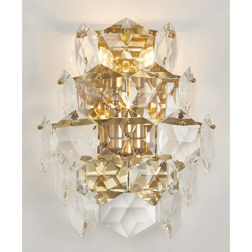 This 3-light transitional wall sconce combines modern elements with a gold stainless steel frame that is understated and elegant, perfect for modern home decor. The head of wall sconce is added with clear crystal, when you hang this modern chandelier in your bedroom, living room, entryway, hallway, or foyer, you will easily be surprised by the magnificent light reflected by the crystal accents.
