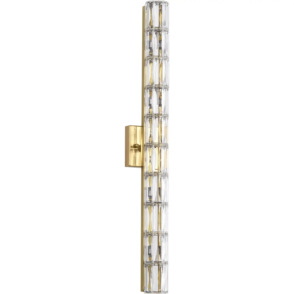 This wall sconce is a sleek and modern lighting fixture that adds a touch of elegance to any room. Measuring 29.9 inches in length, 4.3 inches in depth, and 4.3 inches in height, this sconce is designed to provide a subtle yet effective source of lighting. The gold finish provides a durable and stylish base for the crystal cylinder, which adds a touch of sophistication and refinement. With 9xG9 sockets and 40W bulbs(Bulbs Not Included), this fixture produces a warm and cozy light that is perfect for ambient lighting or task lighting. The compact size and minimalist design make it easy to install and place in a variety of settings, such as a hallway, bathroom, living room, or bedroom.
