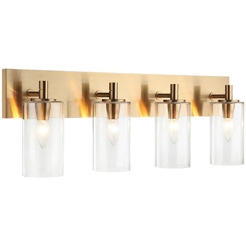 The Candela series is a transitional style vanity pillar shaped glass. Three finishes, Aged Gold Brass, Chrome, Matte Black in either Clear or Opal glass shade.