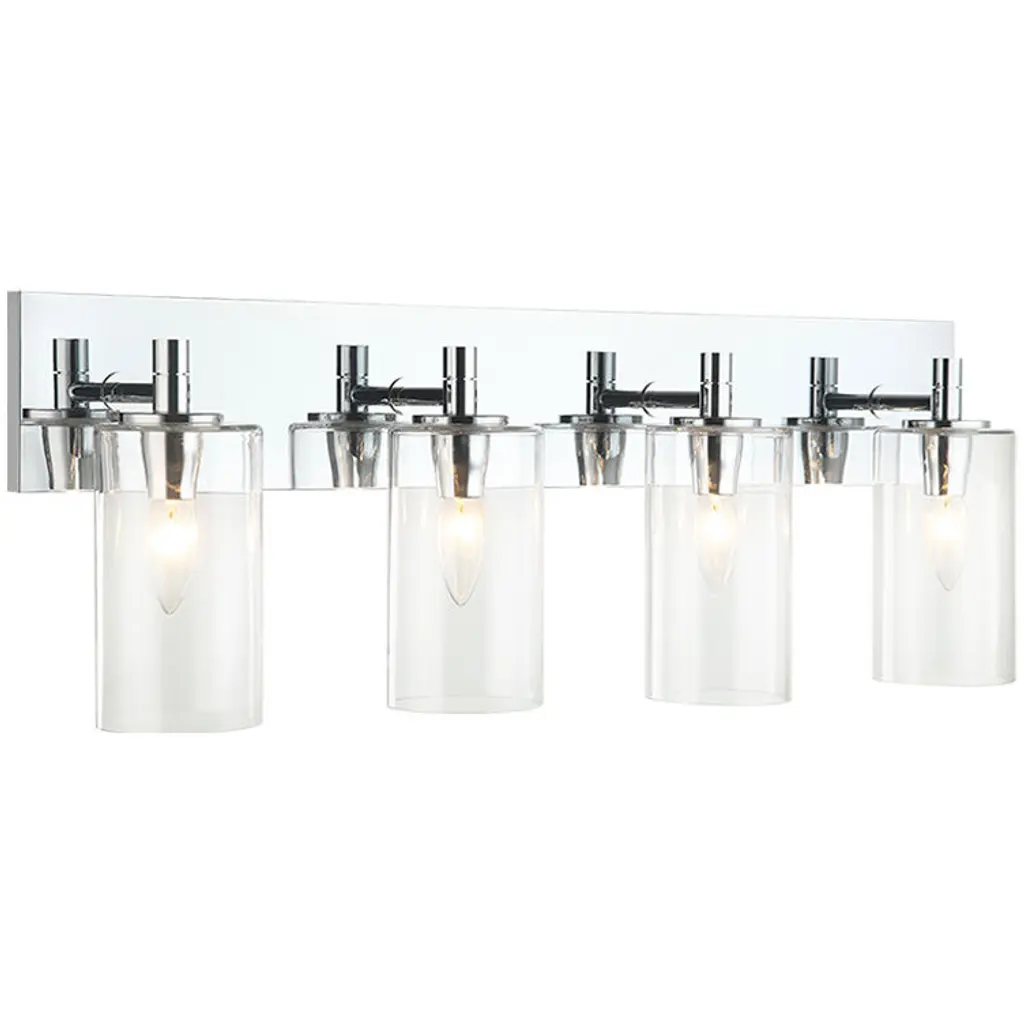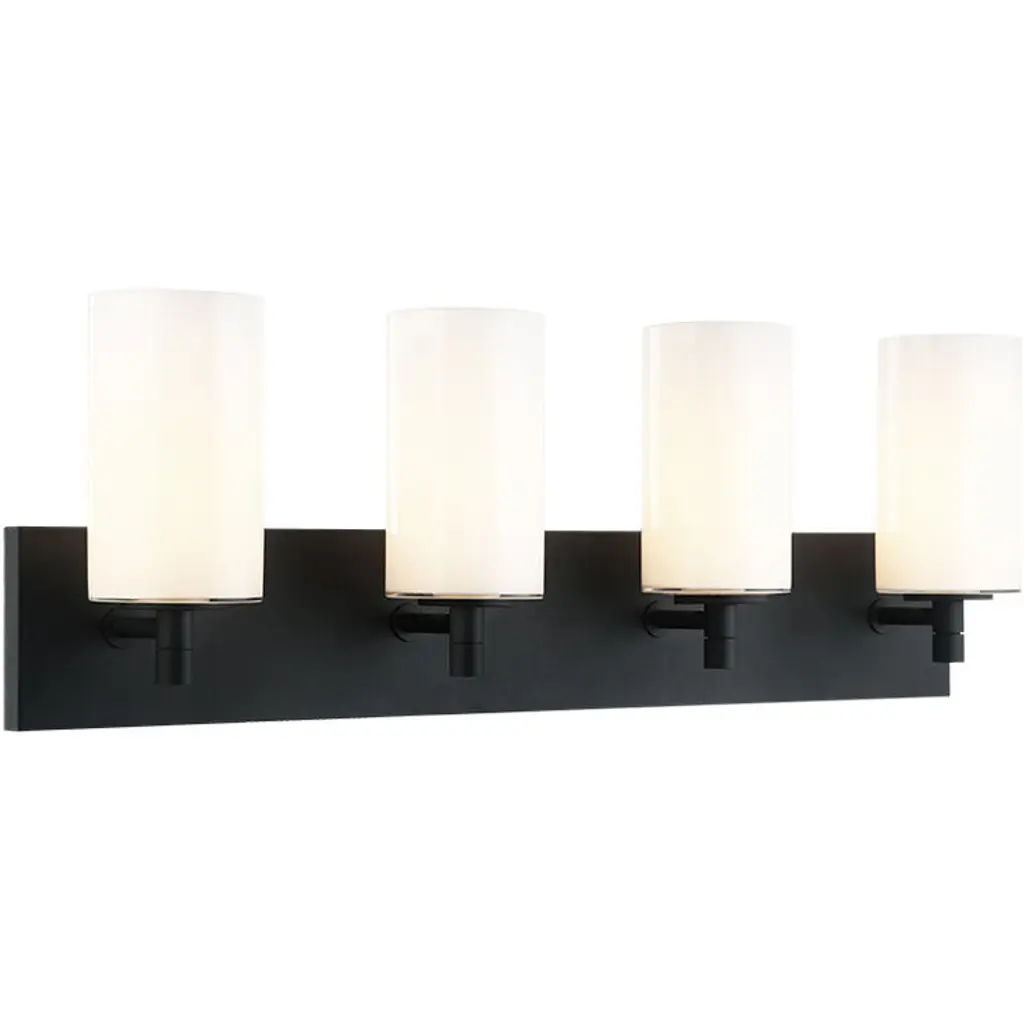 The Candela series is a transitional style vanity pillar shaped glass. Three finishes, Aged Gold Brass, Chrome, Matte Black in either Clear or Opal glass shade.