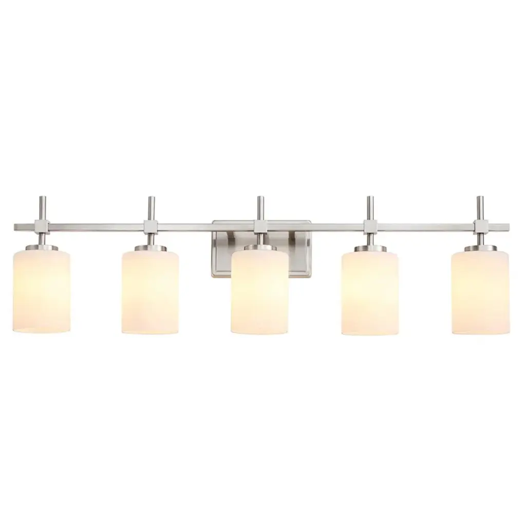Candlearia 6 Light 56 Inch Brushed Nickel Bath Bar Wall Light In Cream (Candlearia), Cylinder With Flat Rim, Incandescent, Cylinder W/ Flat Rim