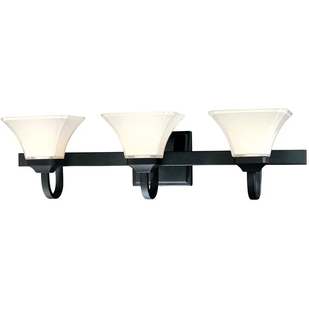 CandleAria™ - Modular 3-Light LED Bath Bar - Cylinder w/ Flat Rim Shade - Amber - Dark Bronze - Dedicated LED