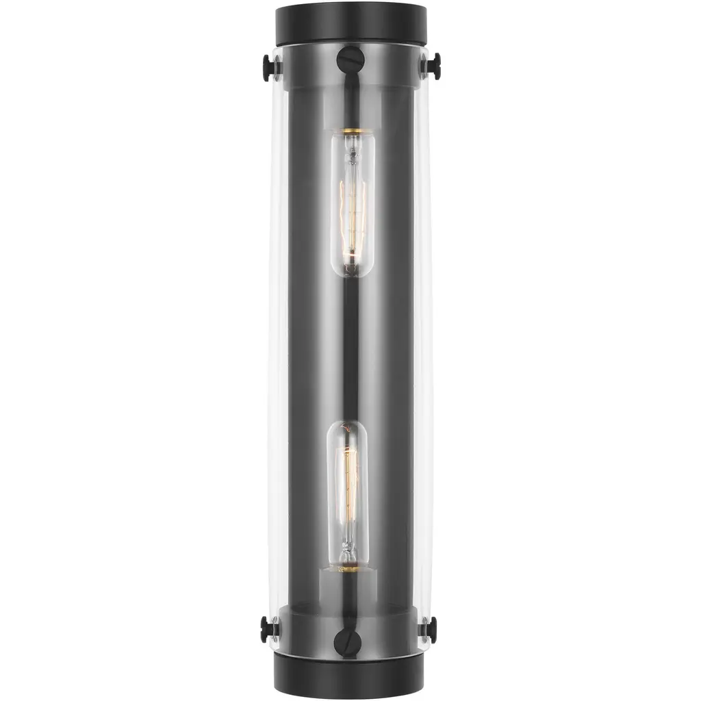 Garrett from Chapman & Myers for Generation Lighting features cylindrical Clear Extruded Glass shades paired with industrial hardware. The two light flush mount fixture in burnished brass supplies ample lighting for your daily needs, while adding a layer of today's style to your home's d?cor. This striking blend of metal and glass, sophisticated in its simplicity, is both industrial and glamorous. It is sure to inspire a higher level of style wherever it is placed.